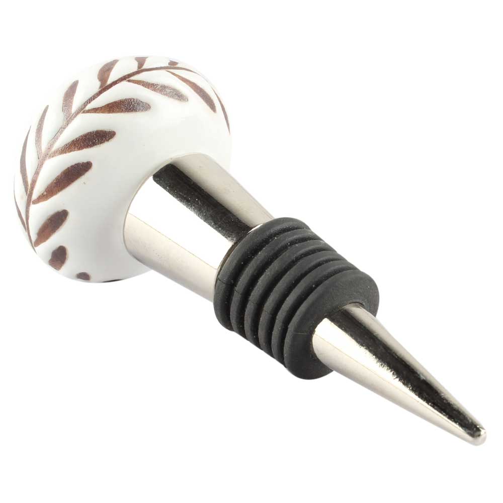 White Etched Ceramic Floral Wine Stopper. Zinc Alloy Wine Bottle Stopper with Attractive Jute Bag Packaging.