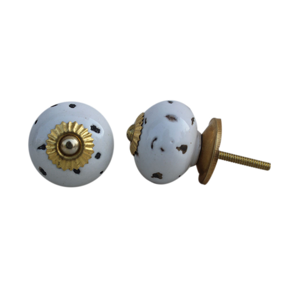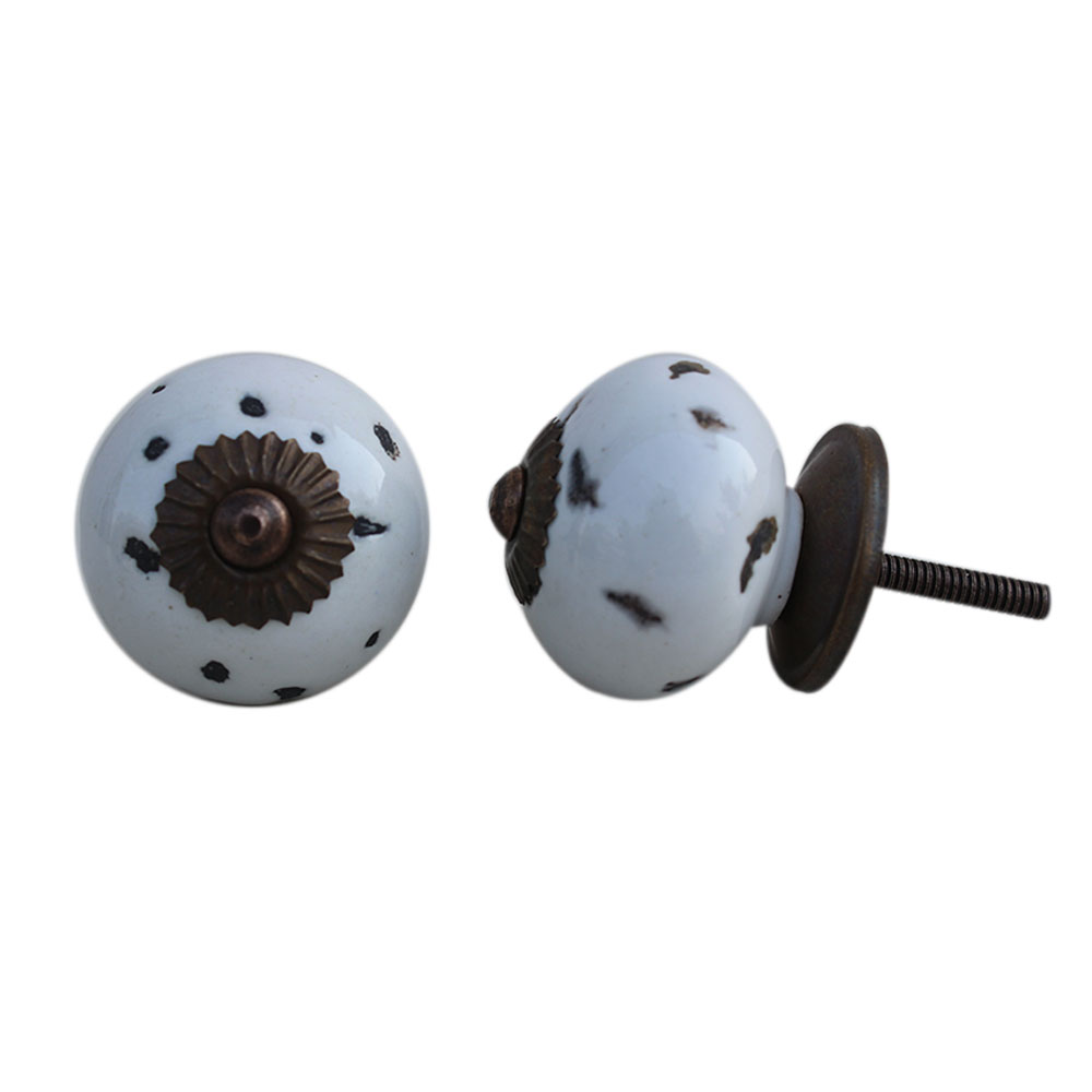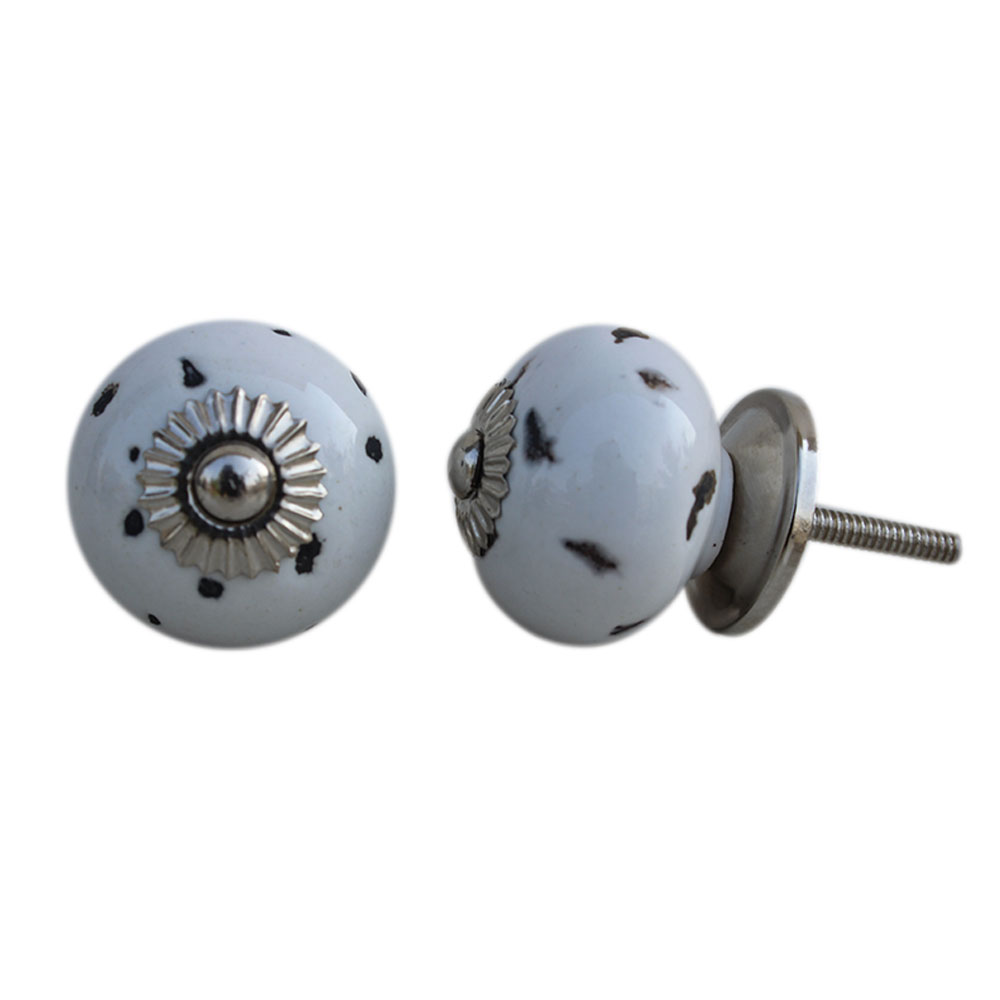 White Etched Round Knob