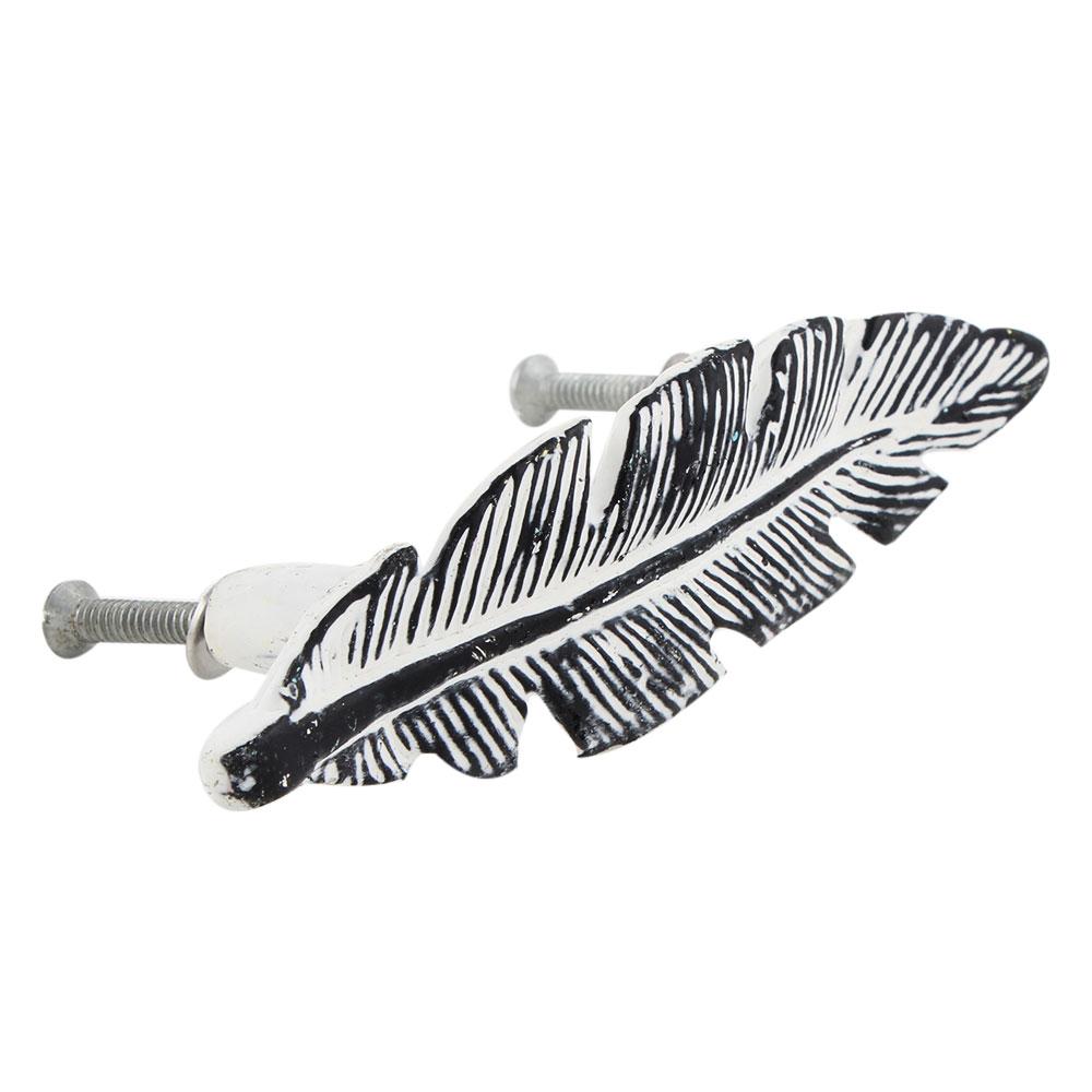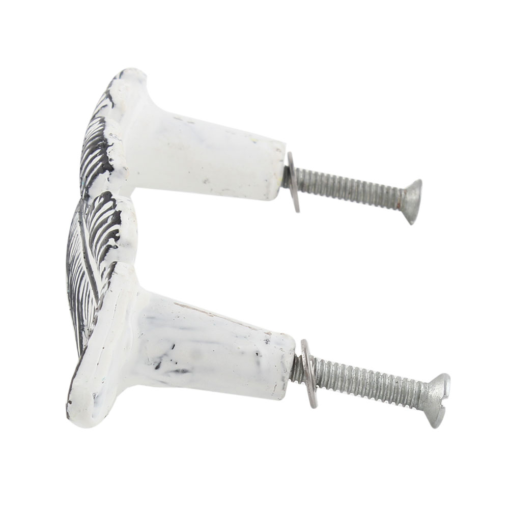 The distressed white feather finish gives these handles a charming, timeworn look that makes them perfect for vintage or shabby-chic-inspired spaces. The intricate feather design adds a touch of elegance to your furniture while maintaining a rustic edge.