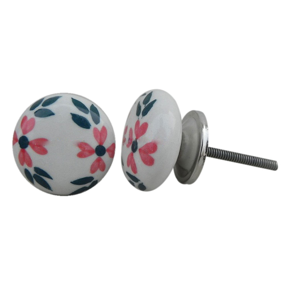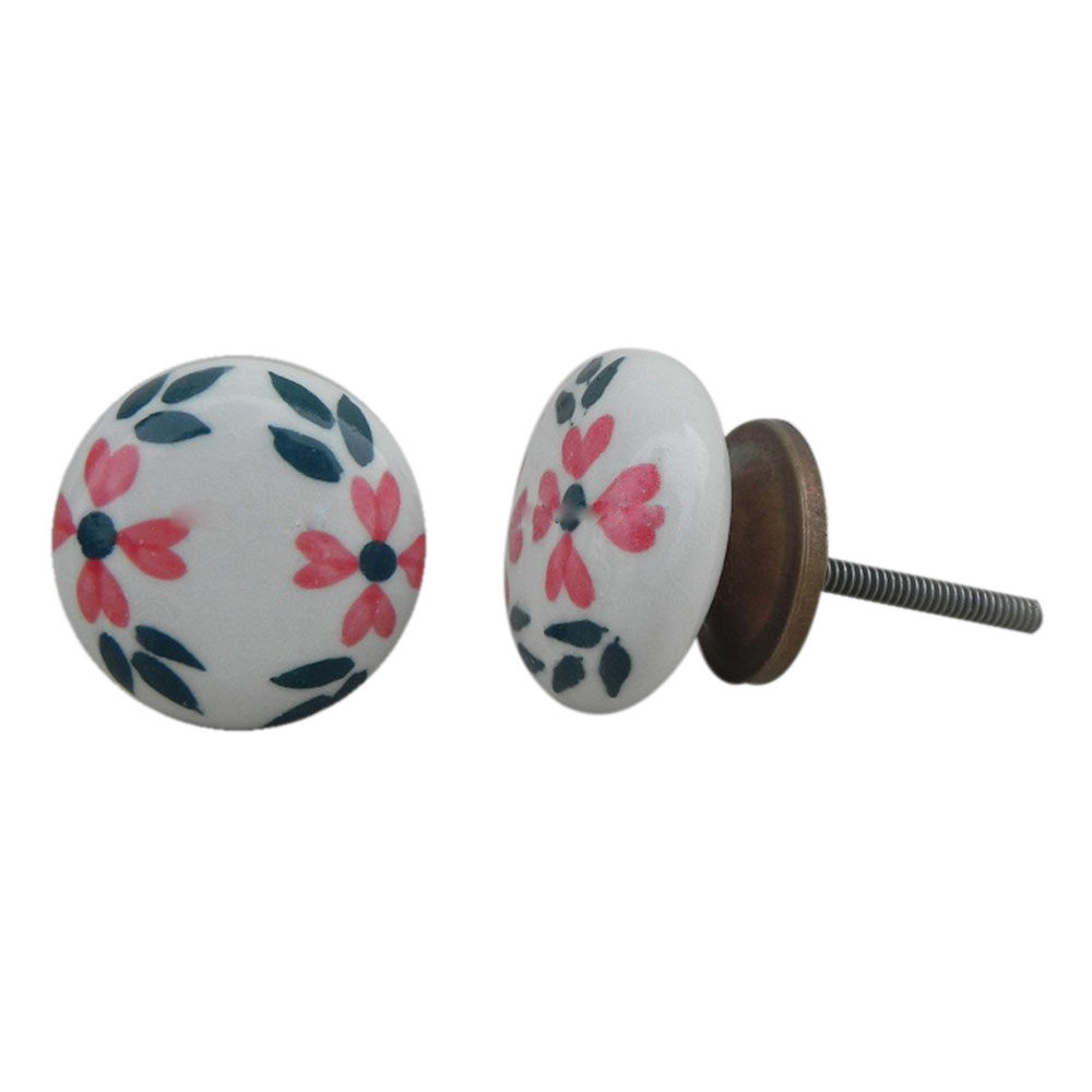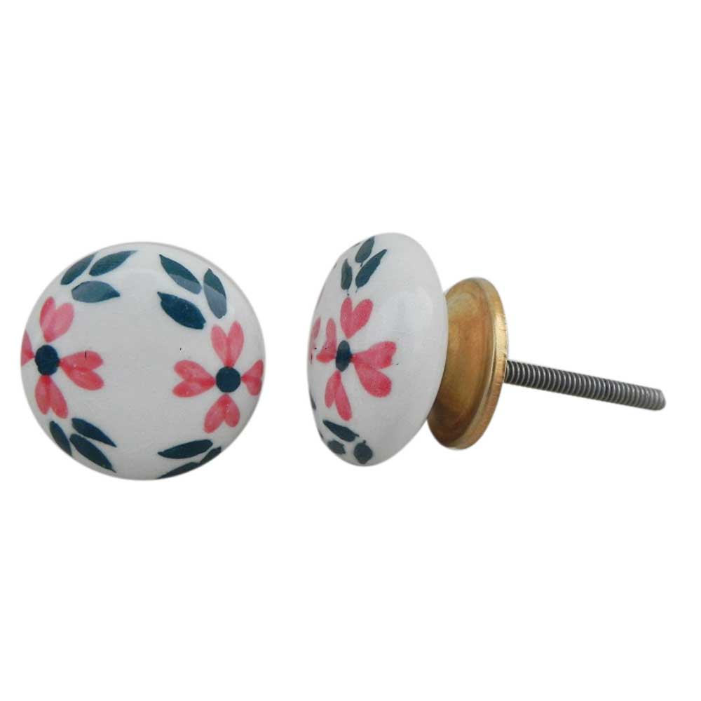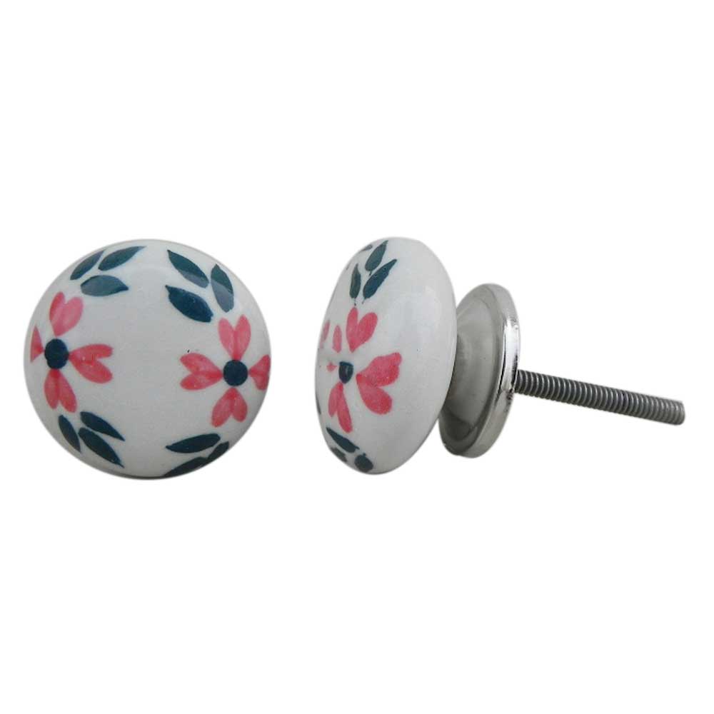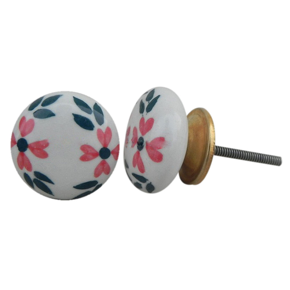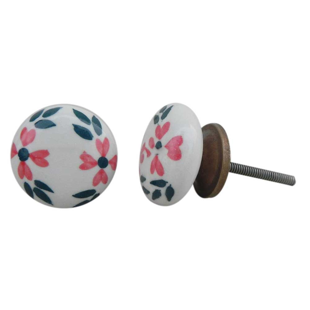 White Floral Flat Knob