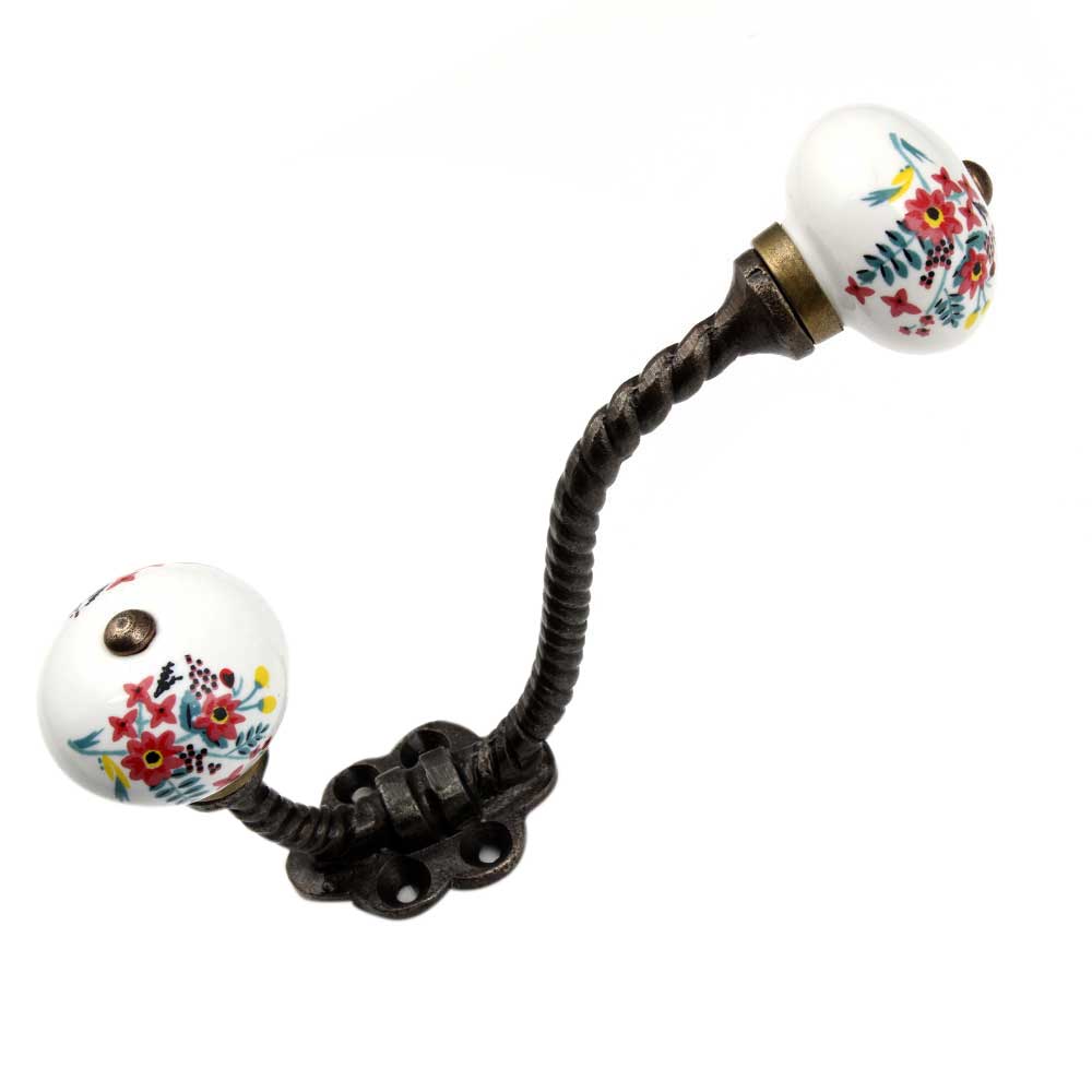 Material: Hand-painted ceramic knob with iron rope-textured hook