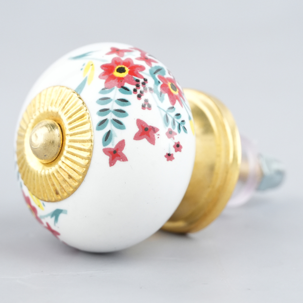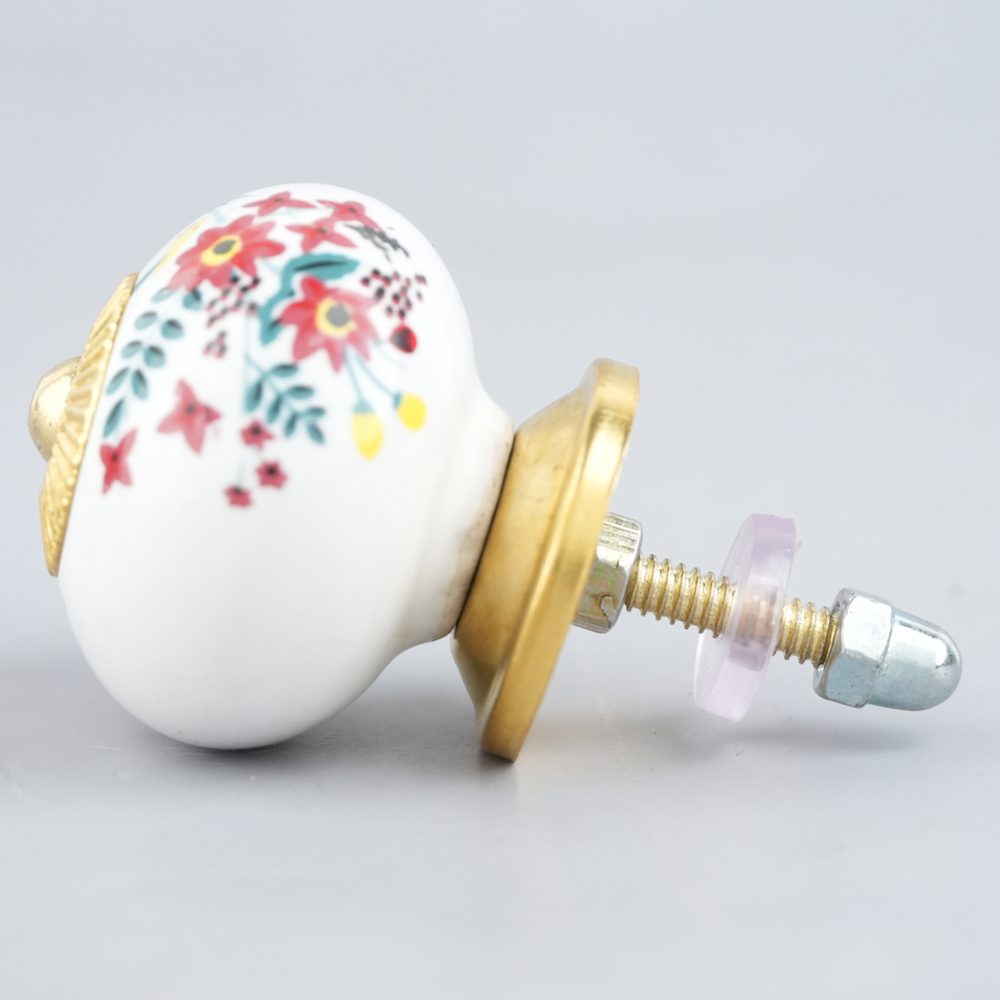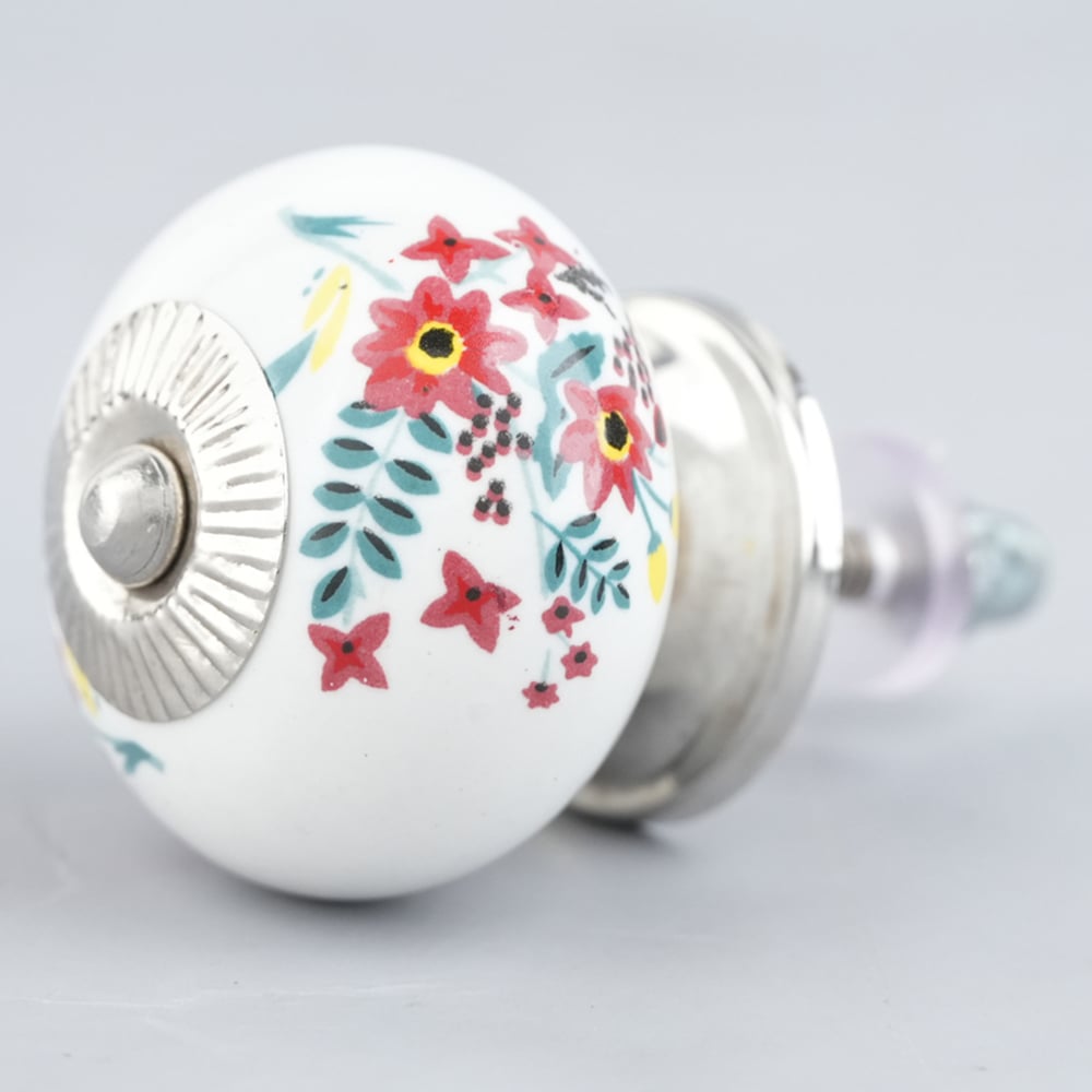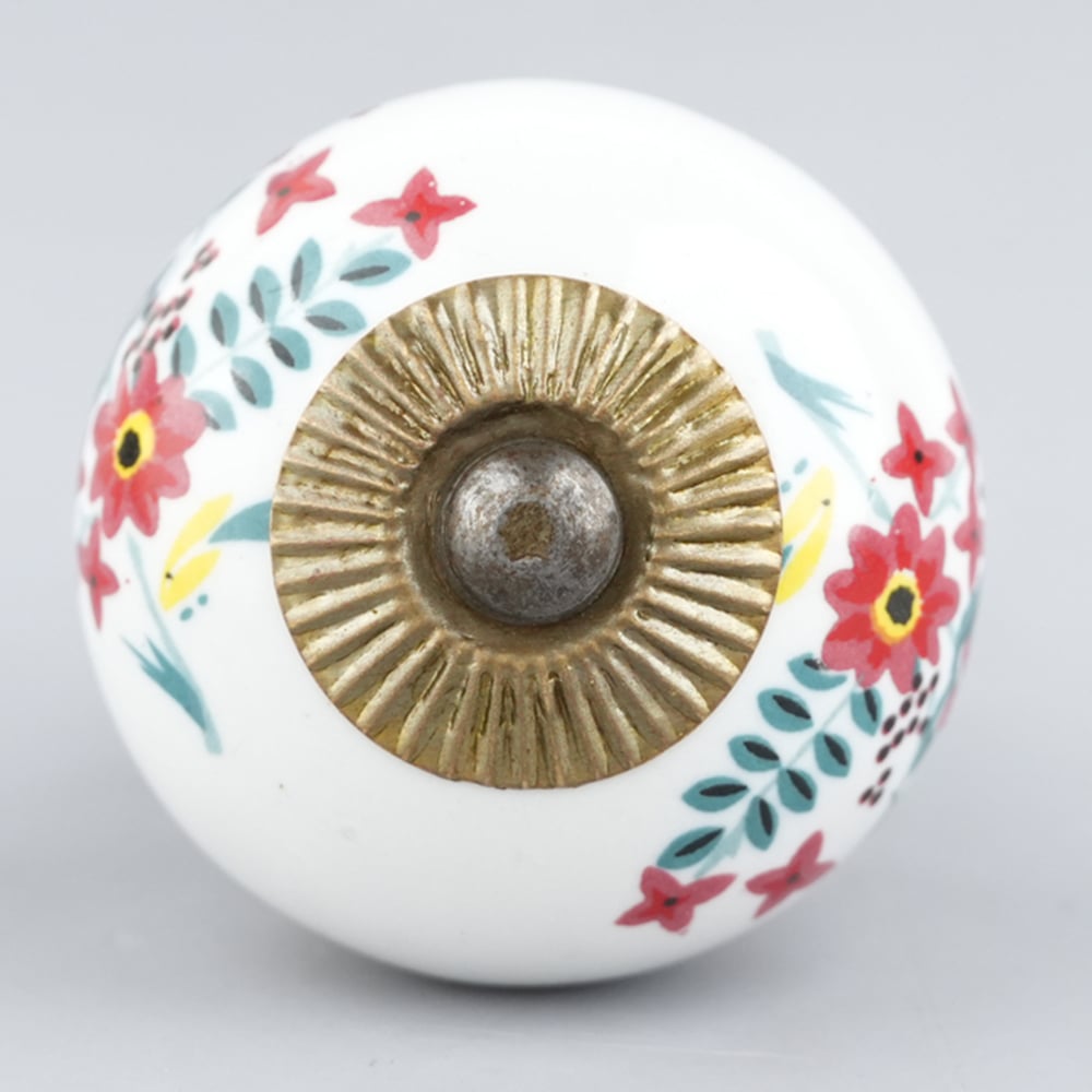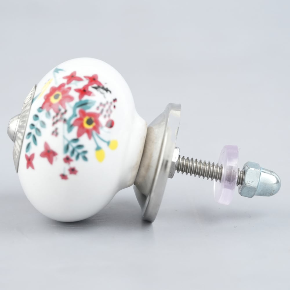 White Floral Leafy Painted Knob