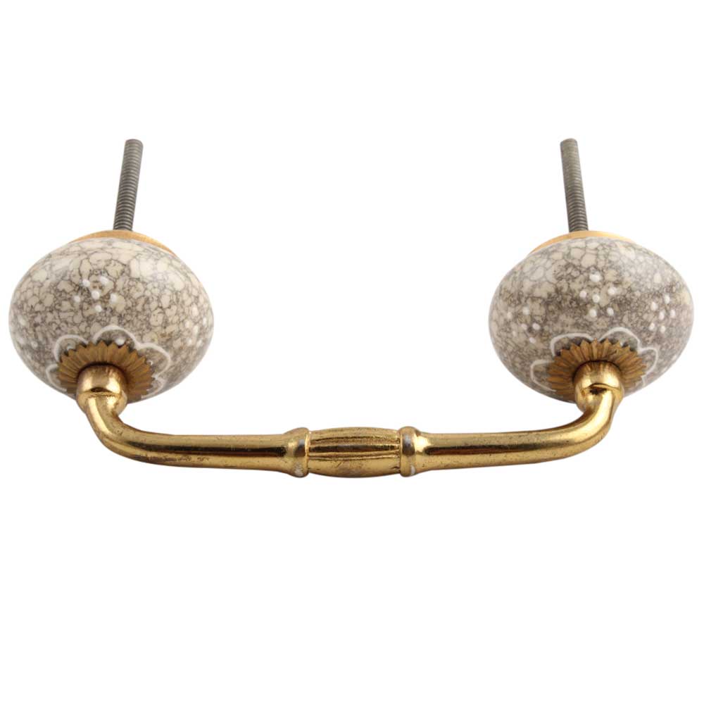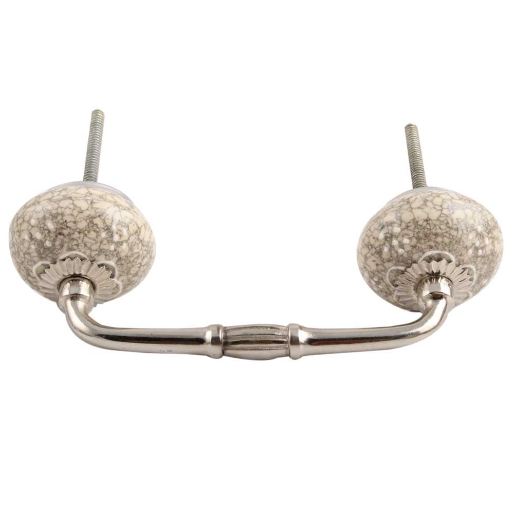 White Flower Crackle Ceramic Bridge Handle. Ideal for Drawer, Dresser, Cabinet, Wardrobe, Cupboard and Almirah etc.
