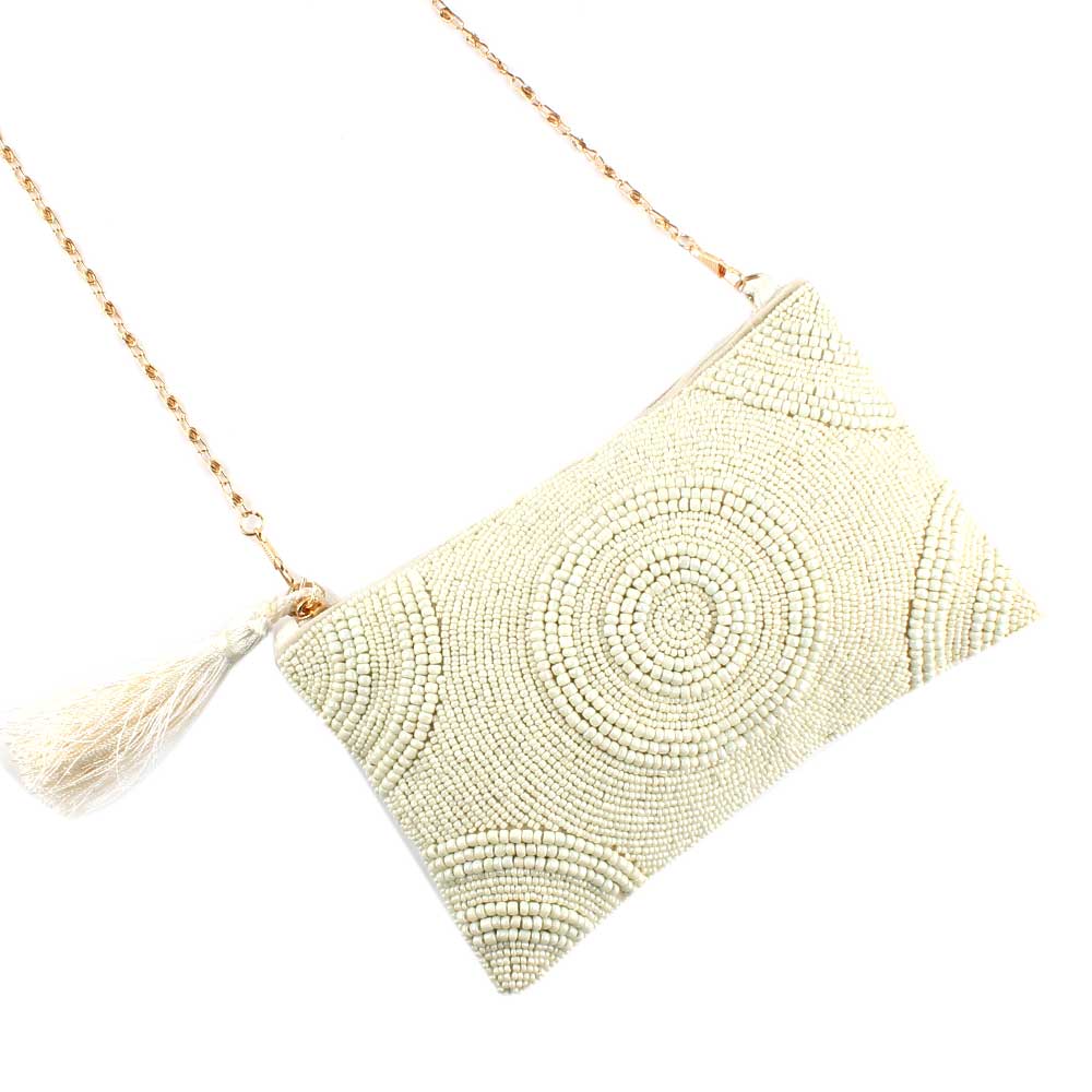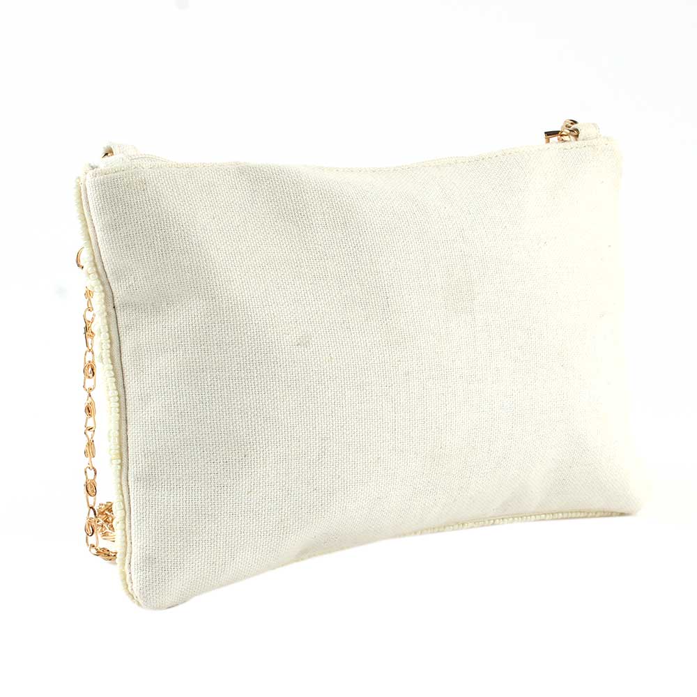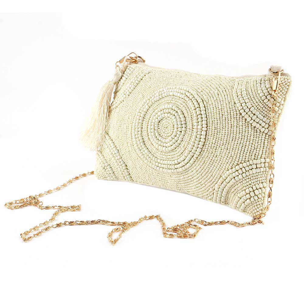 White Glass Beaded ziptop clutch bag has a subtle elegance that reflects today's style statement. Combine this famous sling with a stunning gown for an enticing evening look.