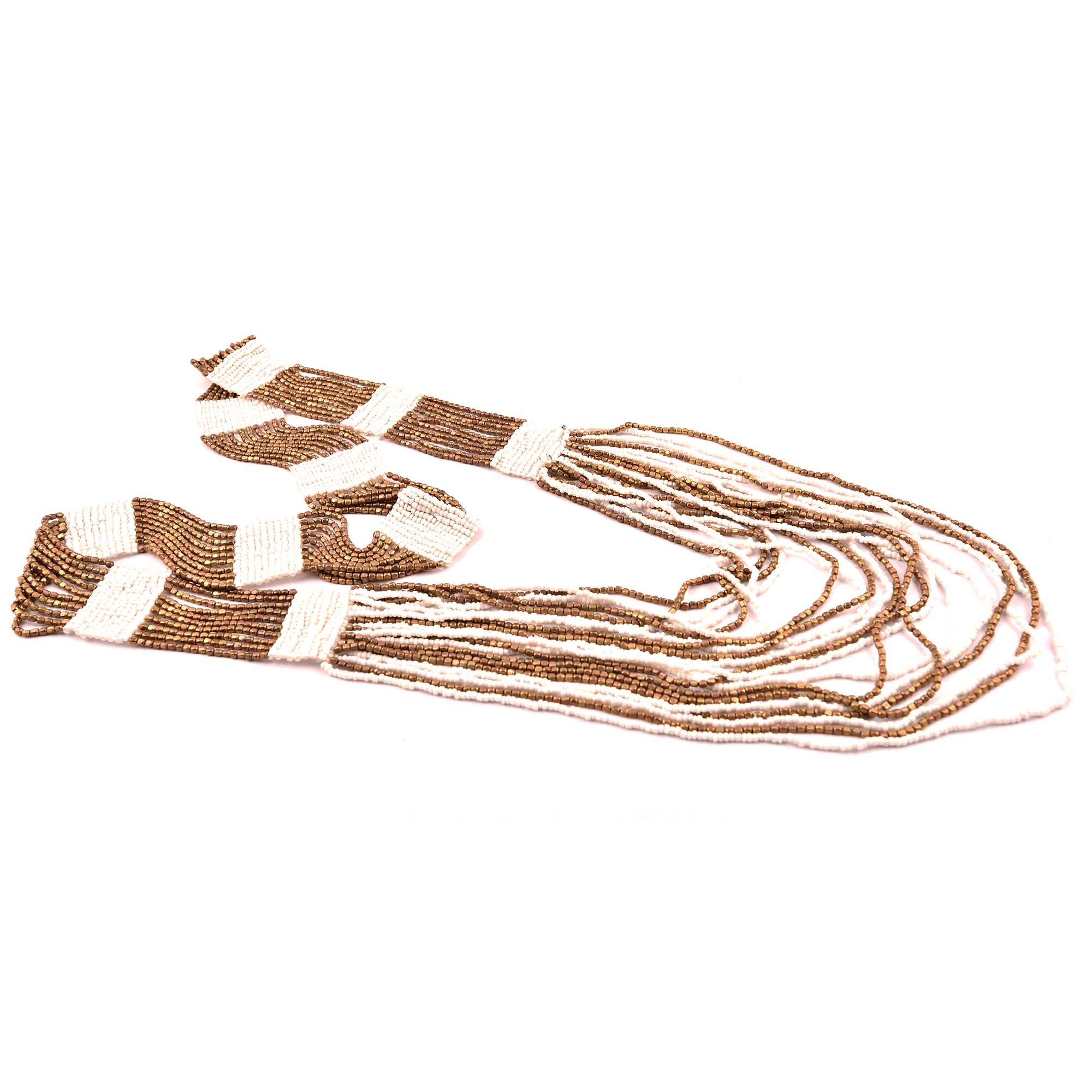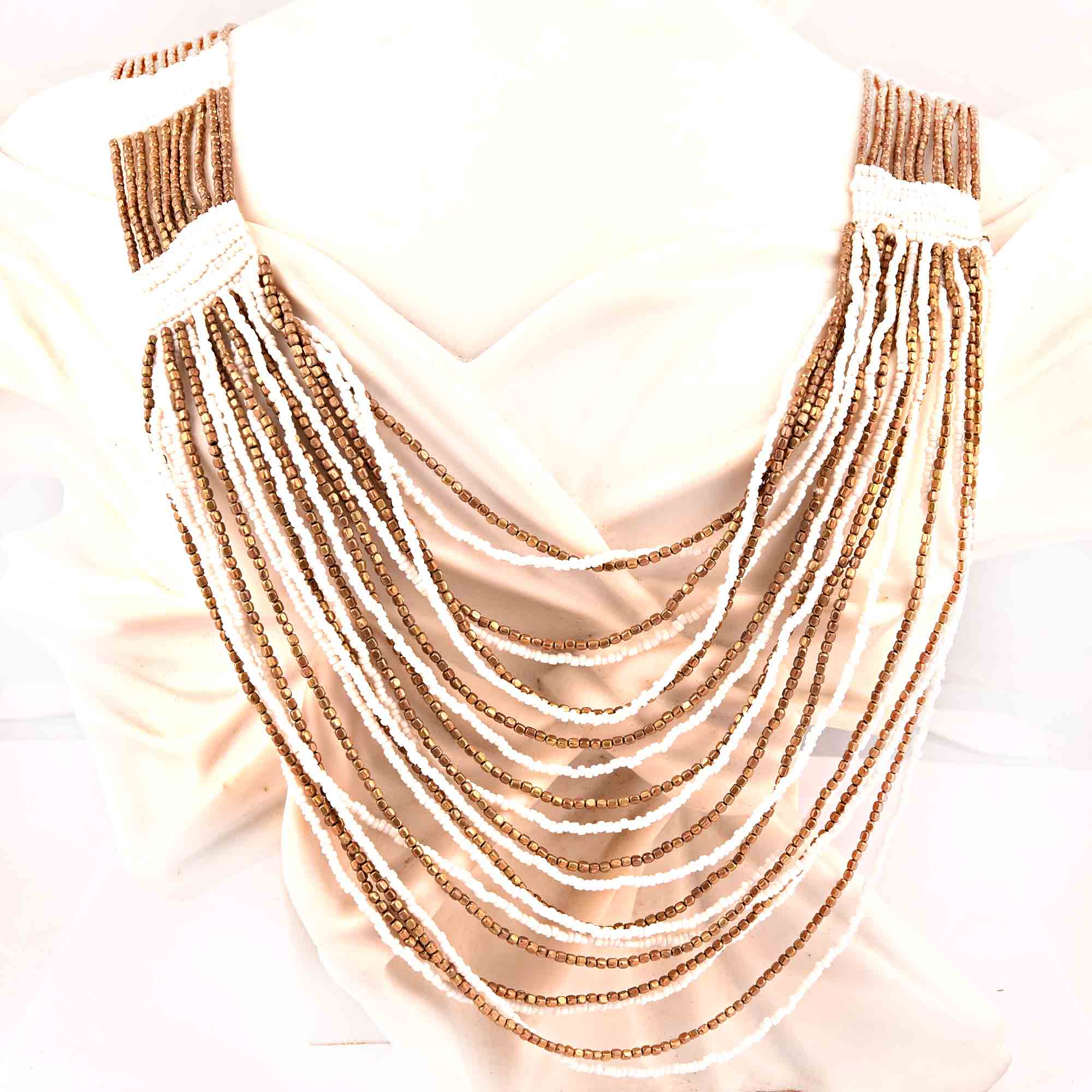 White Glow Layered Necklace New Beautiful Jewellery. Seed Beads, Cotton With Rose Gold Plated Tie Back.