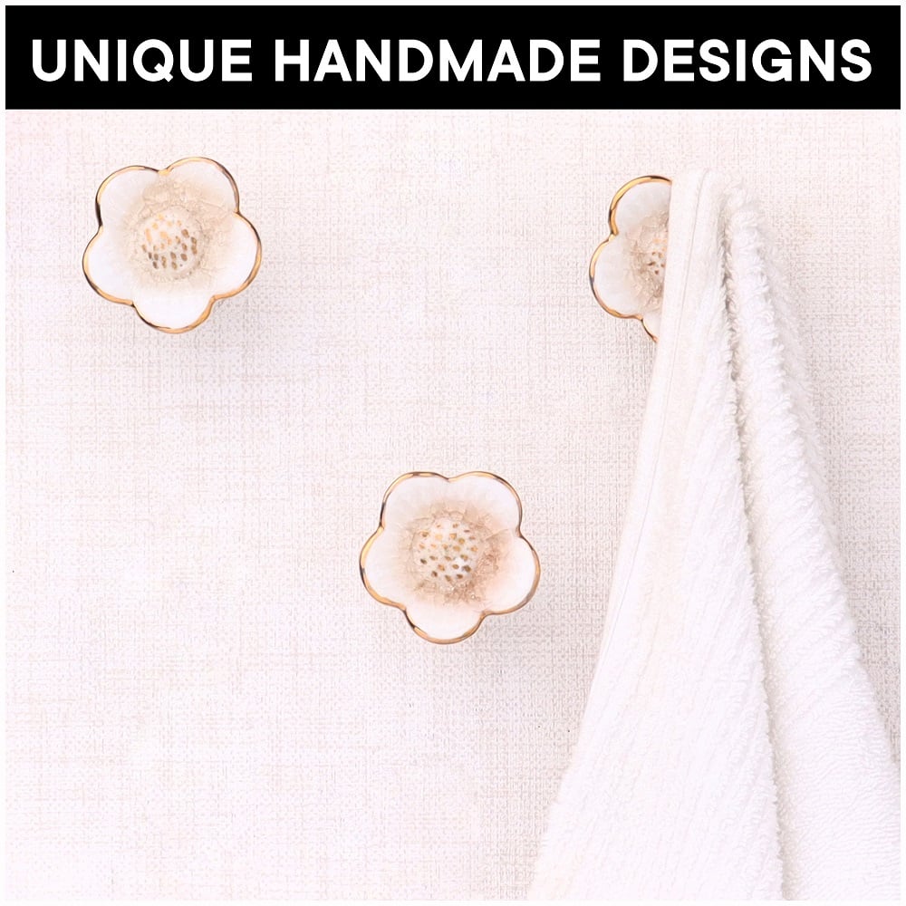 Elevate your wall decor with the White Gold Daffodils Ceramic Wall Hooks (Set of 3) – a perfect blend of beauty and function. Each hook is handcrafted by skilled artisans using high-quality ceramic and finished with a radiant white glaze accented by delicate golden daffodil motifs. These wall hooks aren’t just for hanging—they're mini statement pieces that add a refined, artistic touch to your space. Functional, ornamental, and made to last, they turn your walls into curated corners of charm.