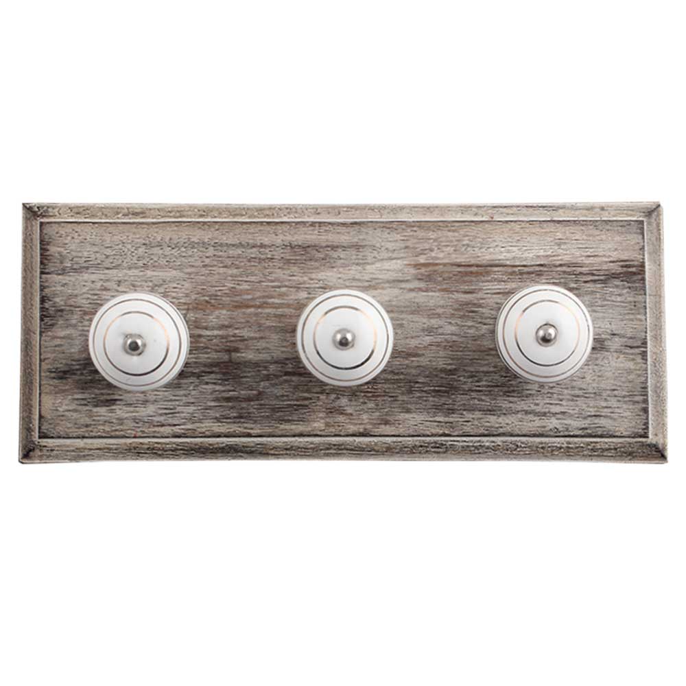 White Gold Strip Wooden Hooks. A Perfect Complement to the Soft Tone of the Wood are these White Traditional Hat Coat Hook Made of Genuine Porcelain and Brass. It can be use to Hang Jewellery, Leashes, Towels, Scarves, Light Weight Sweaters, Caps Etc.