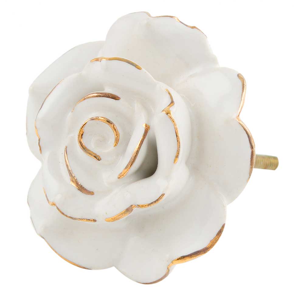 White Golden Rose Ceramic Cabinet Knobs