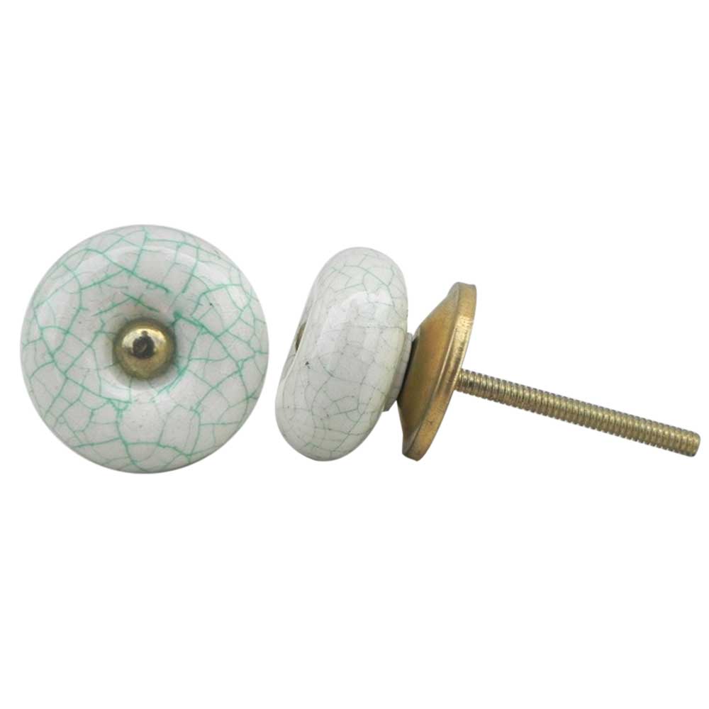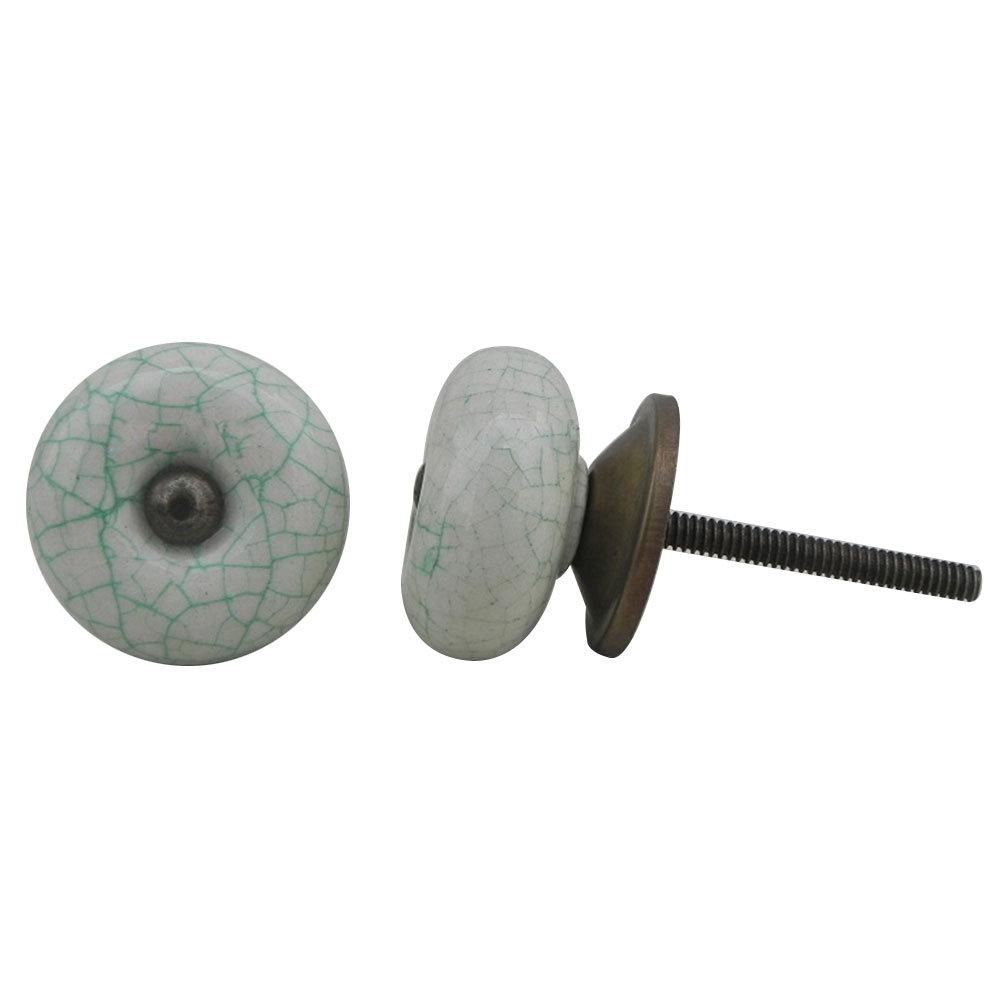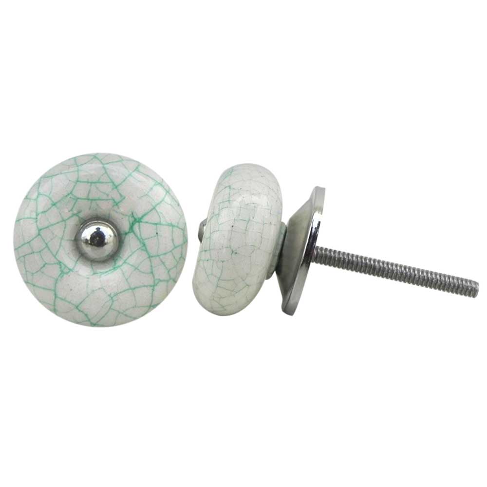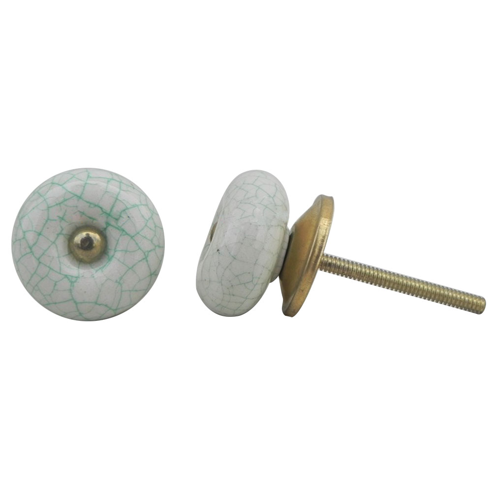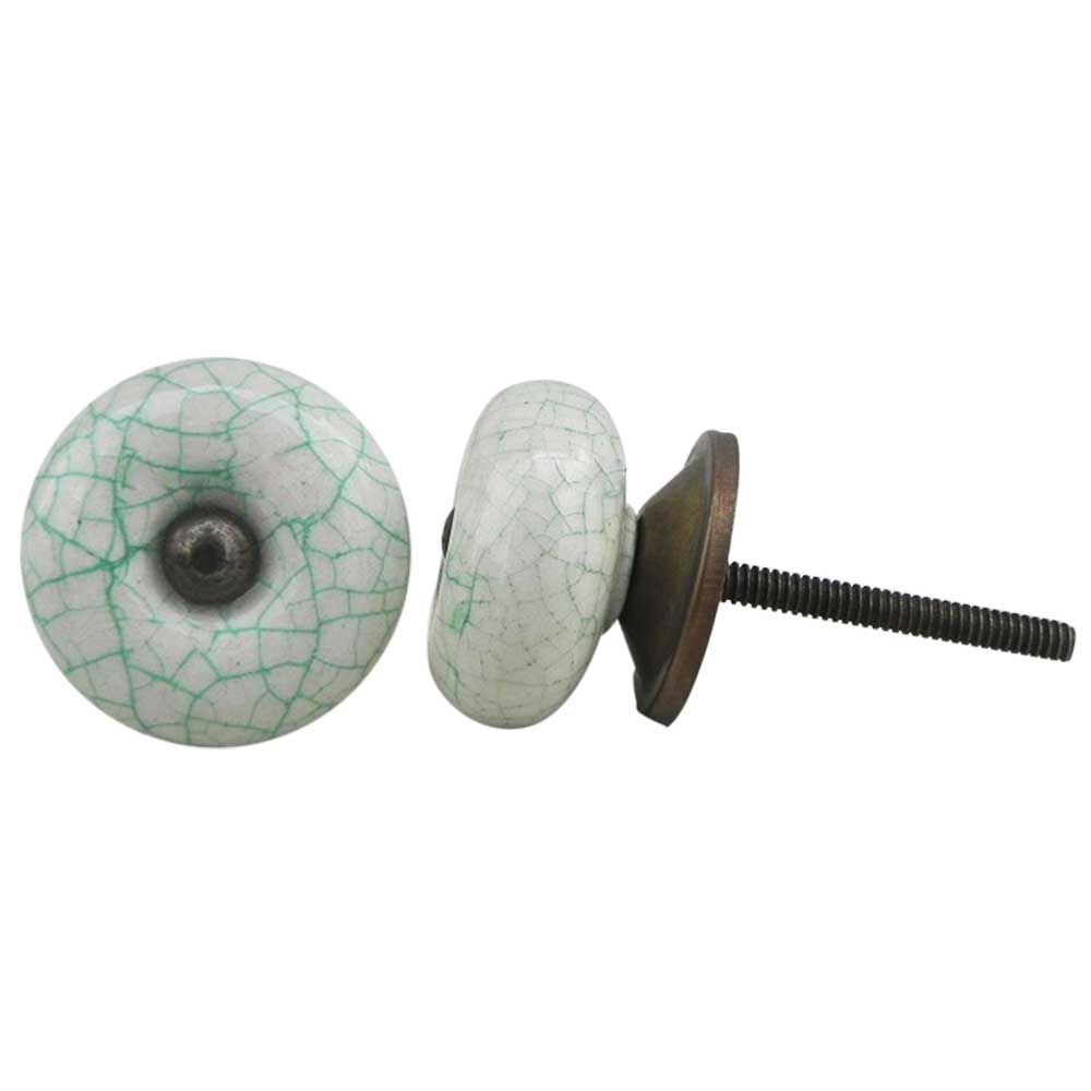 White Green Ceramic Crackle Dresser Knob