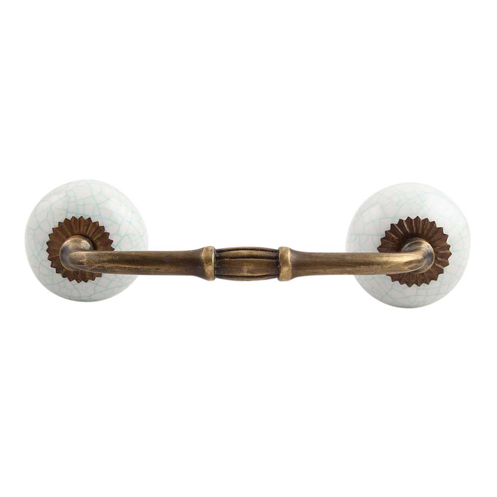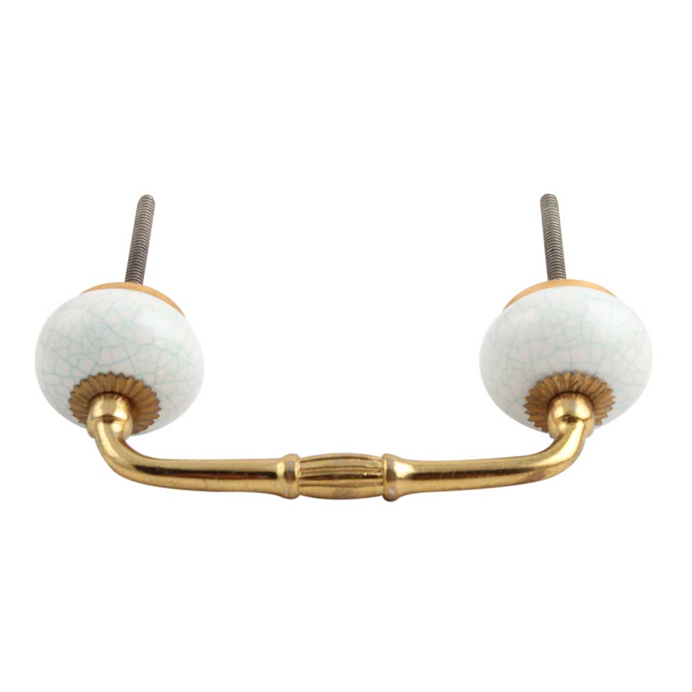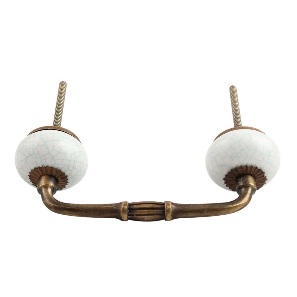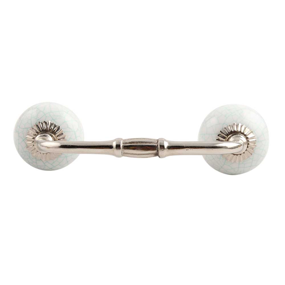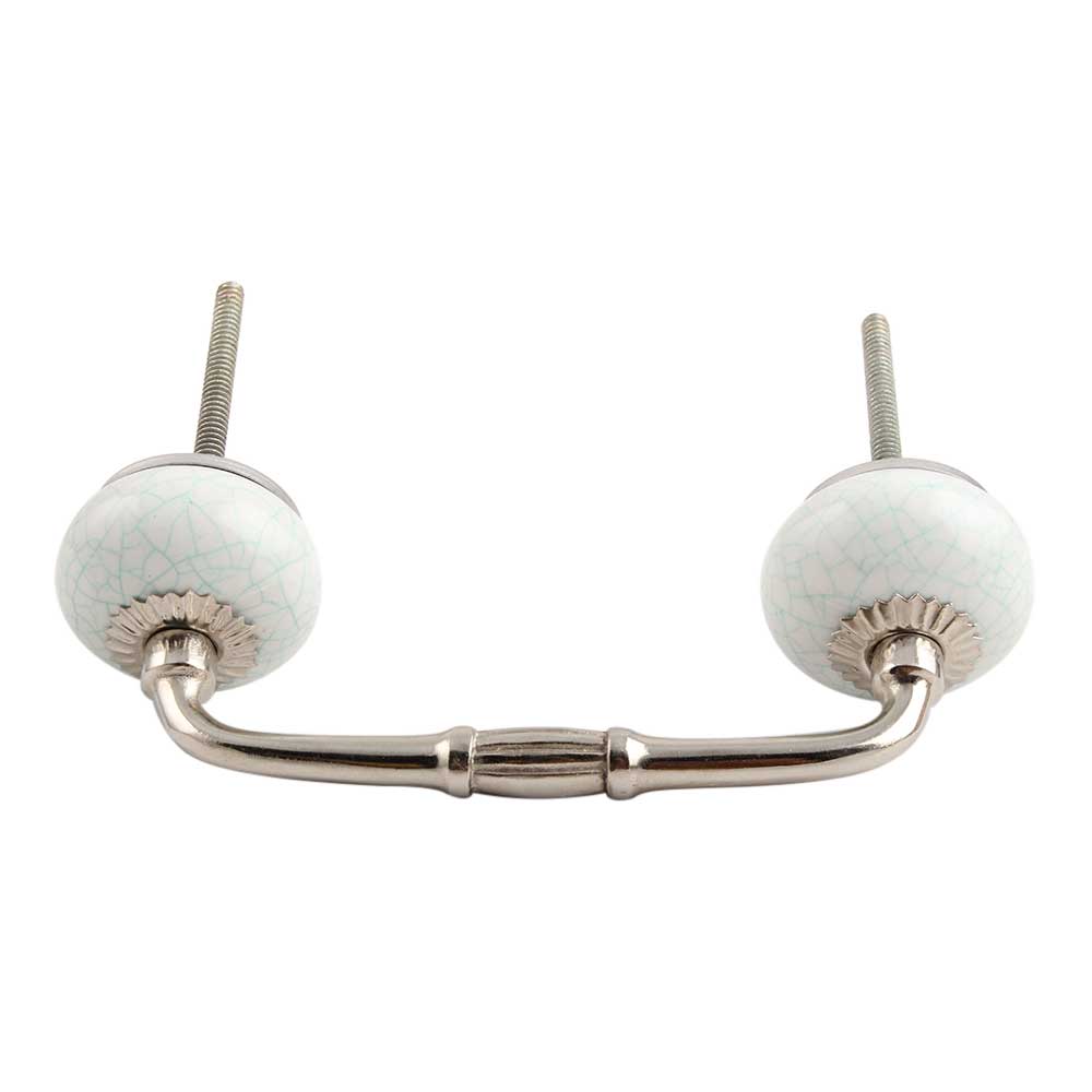 White Green Crackle Ceramic Bridge Handle. Ideal for Drawer, Dresser, Cabinet, Wardrobe, Cupboard and Almirah.