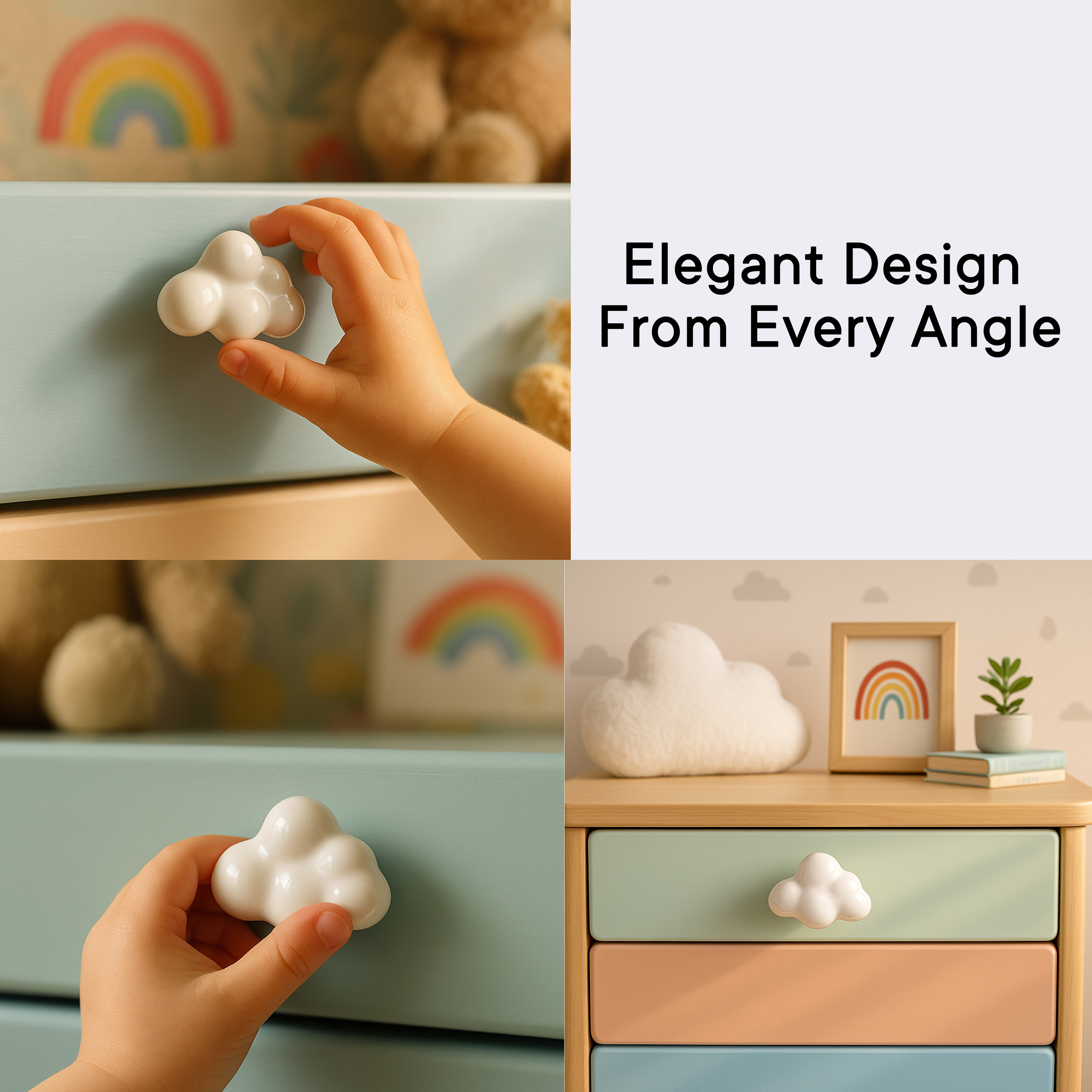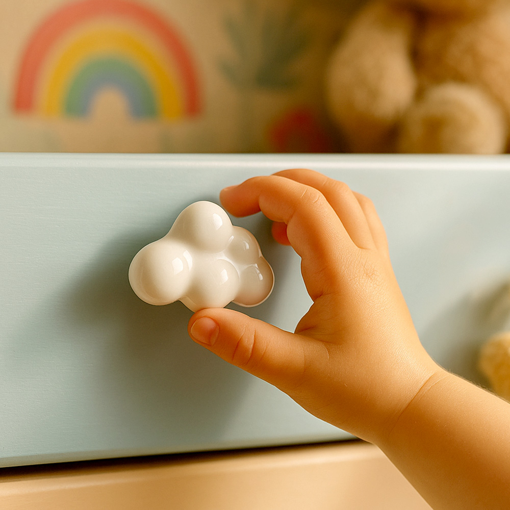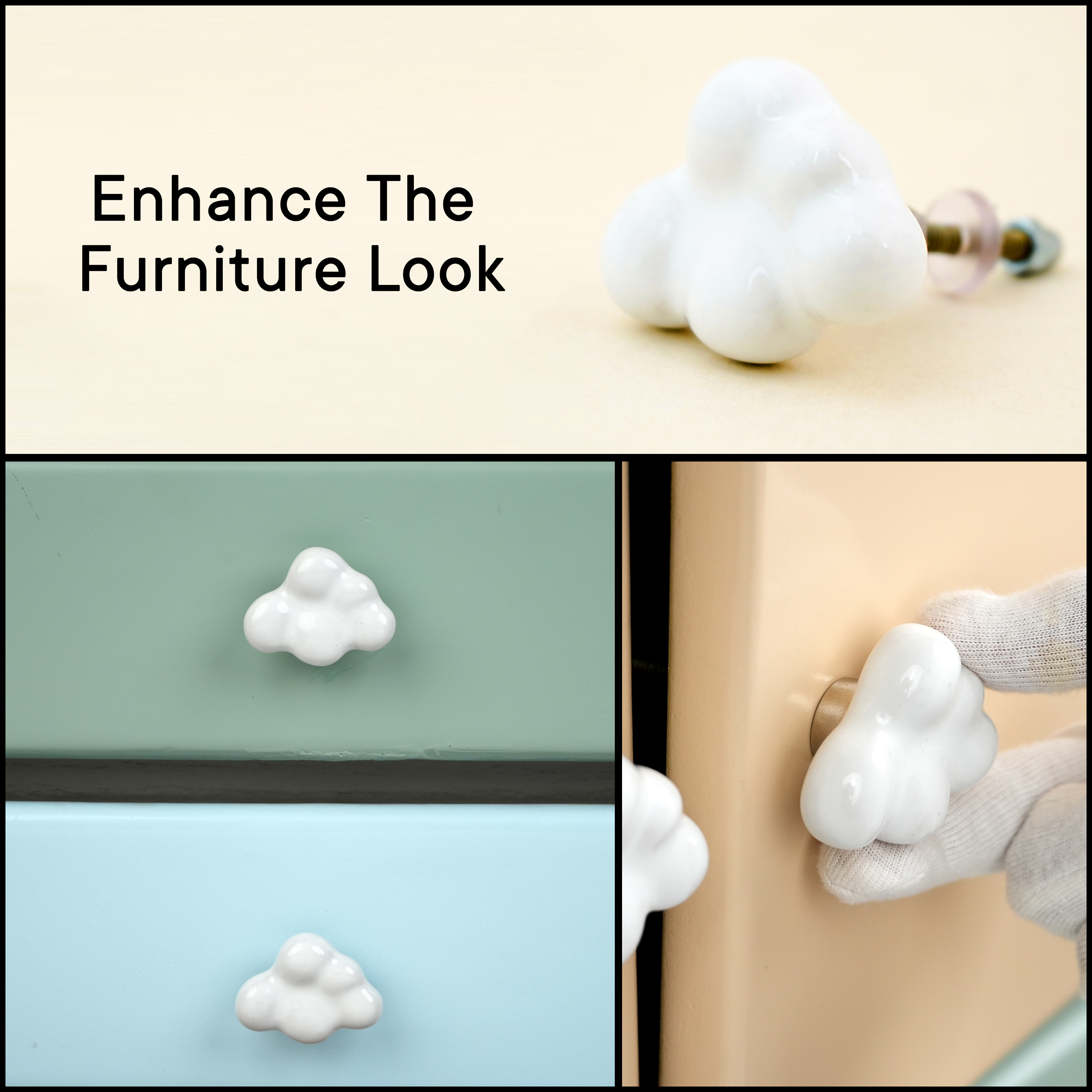 • White Handmade Ceramic Cloud Shape Drawer Knob