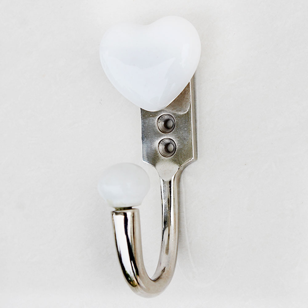 White Heart Ceramic Hooks