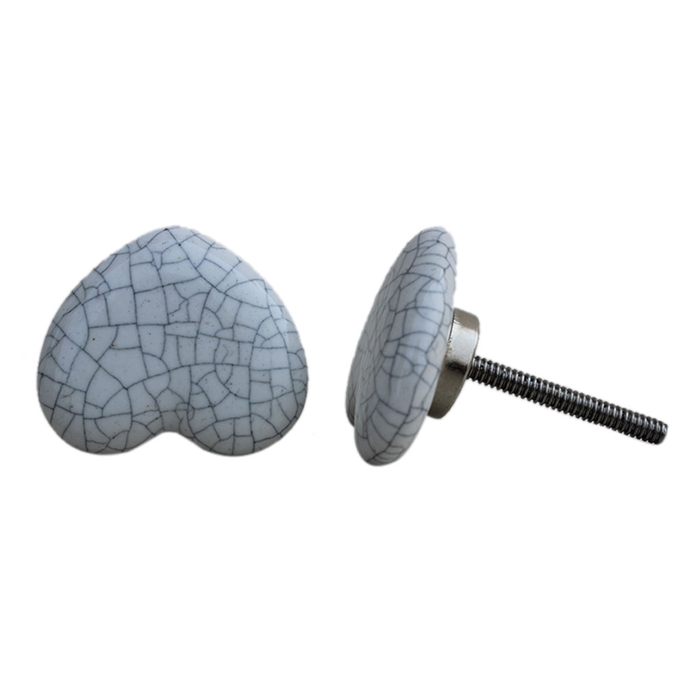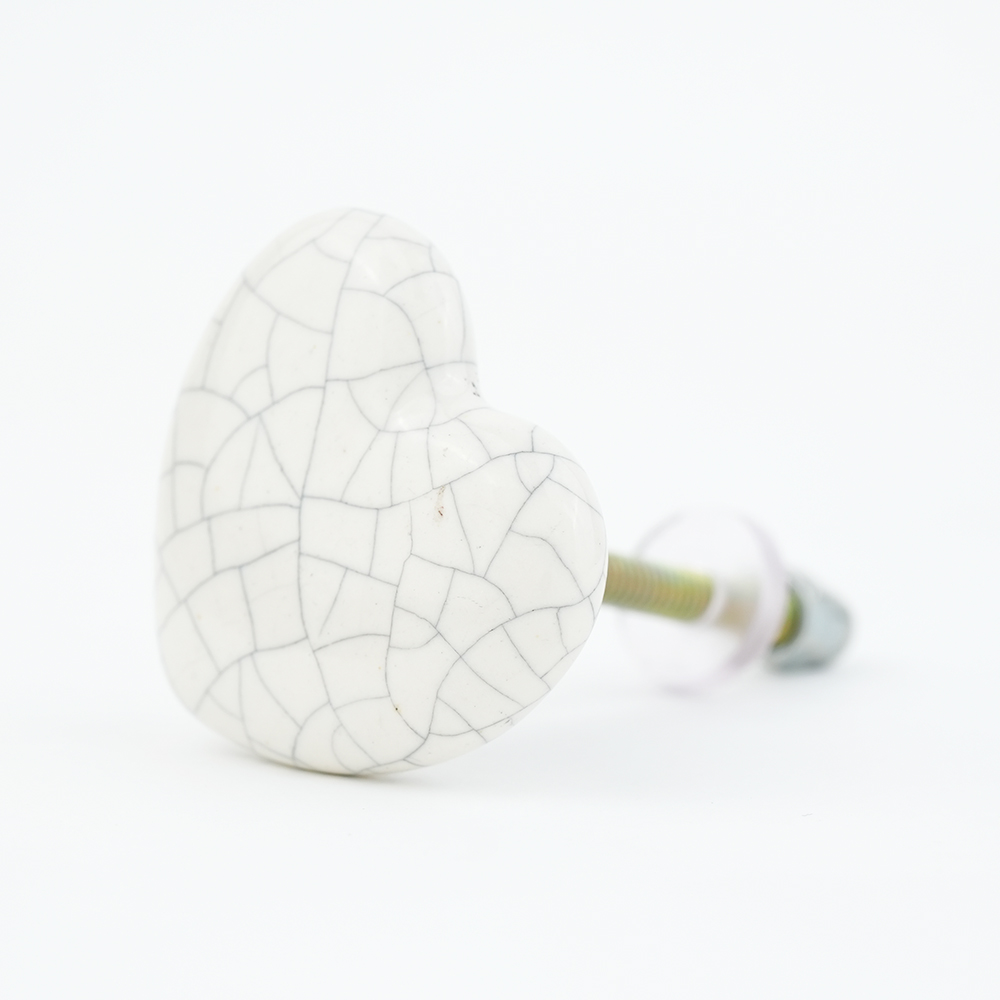 White Heart Crackle Ceramic Dresser Knob