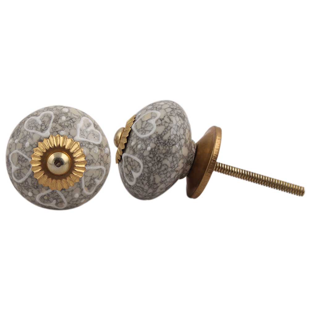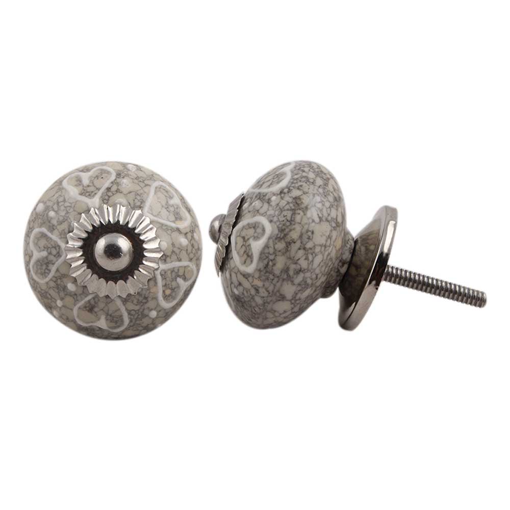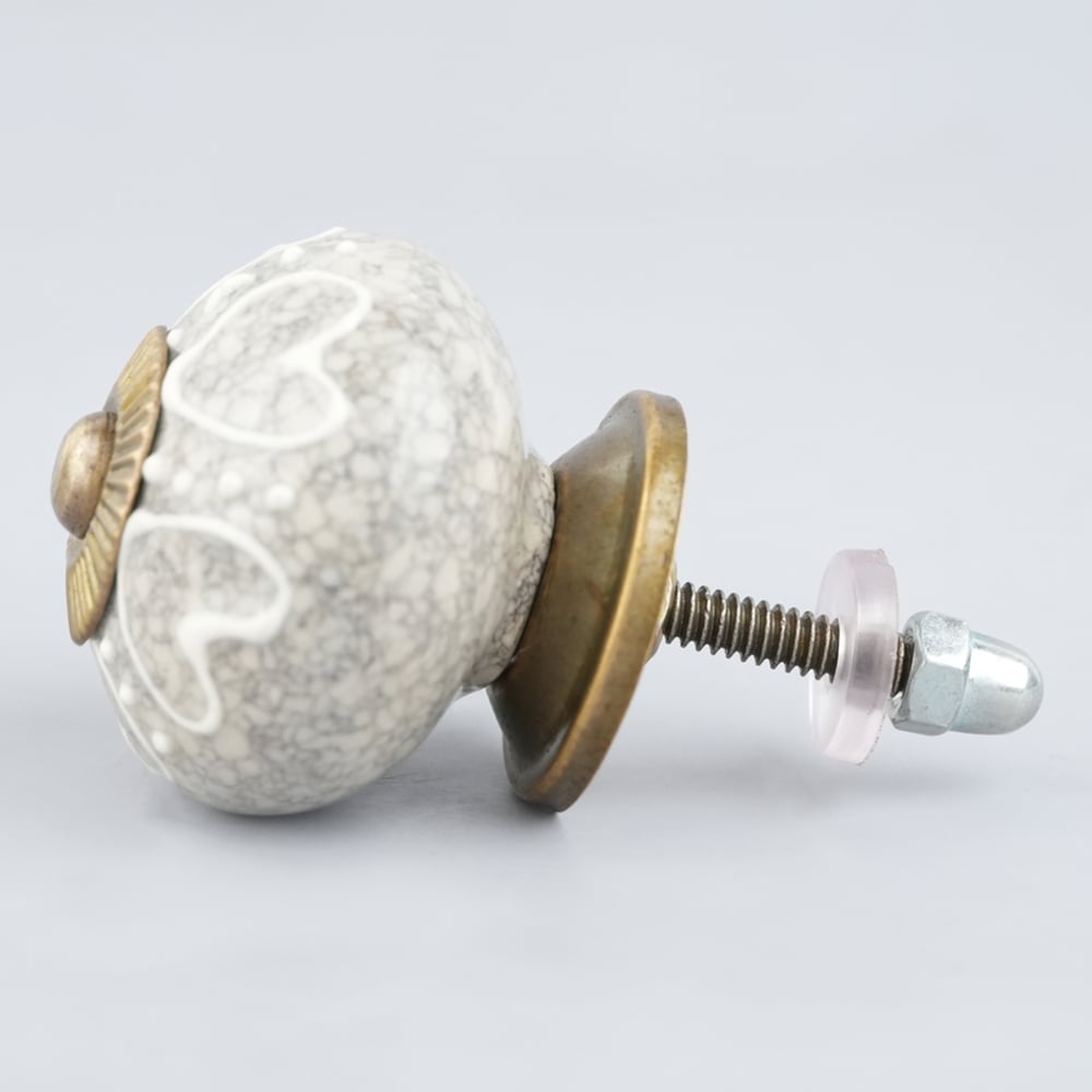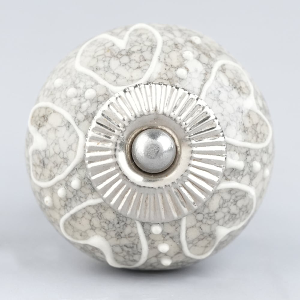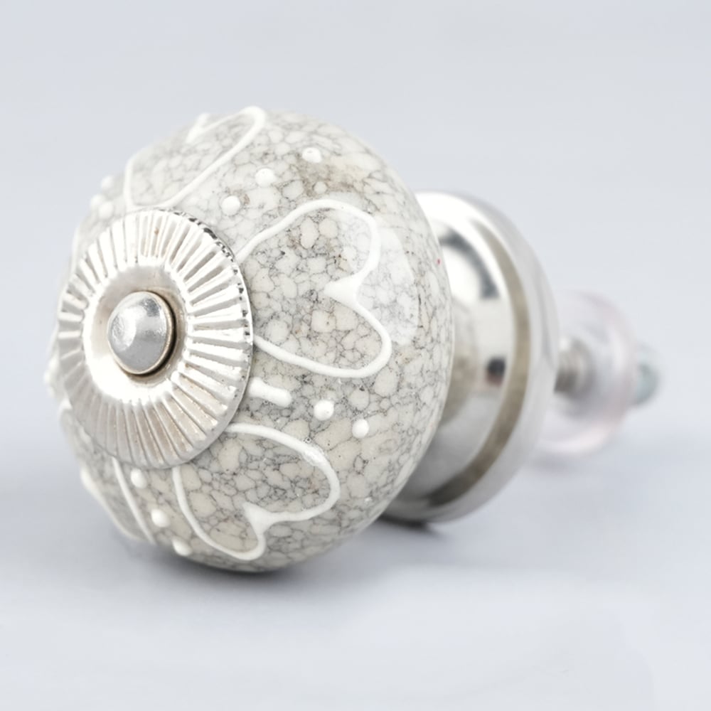 White Heart Crackle Ceramic Dresser Knob
