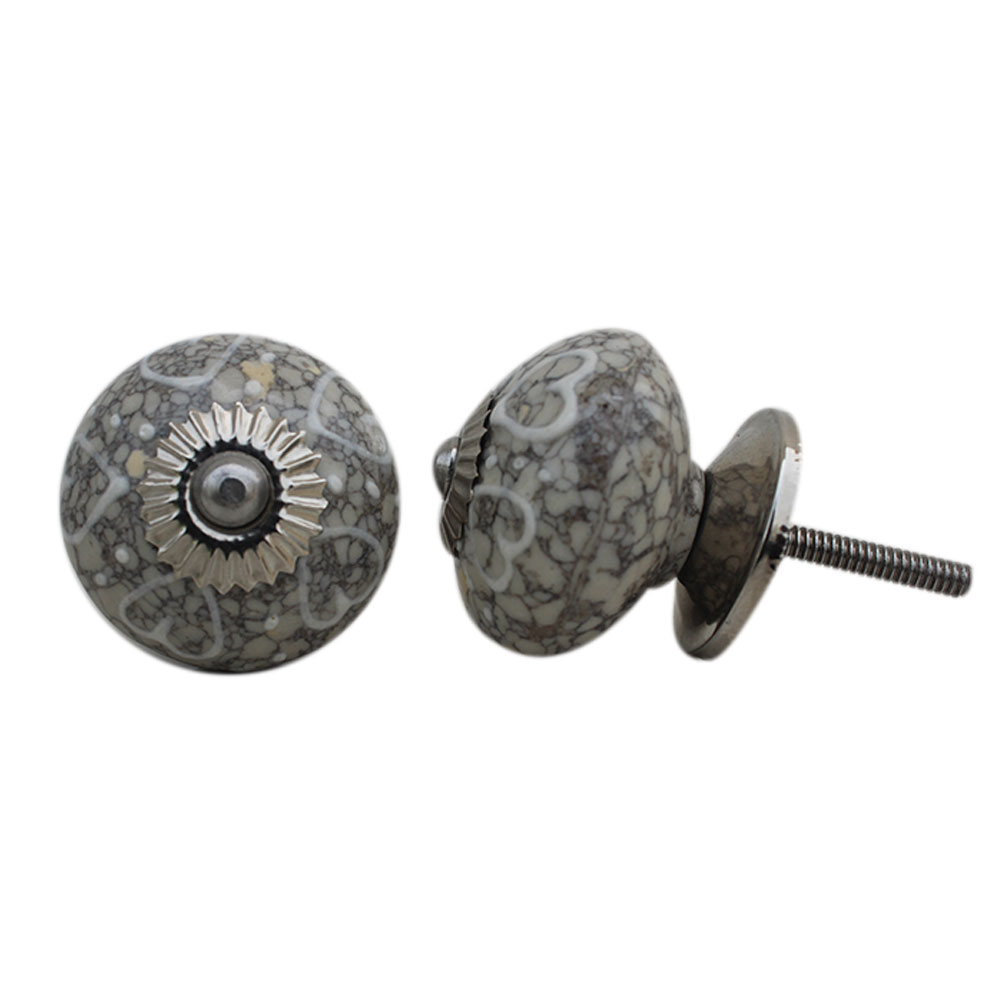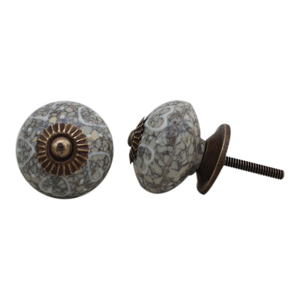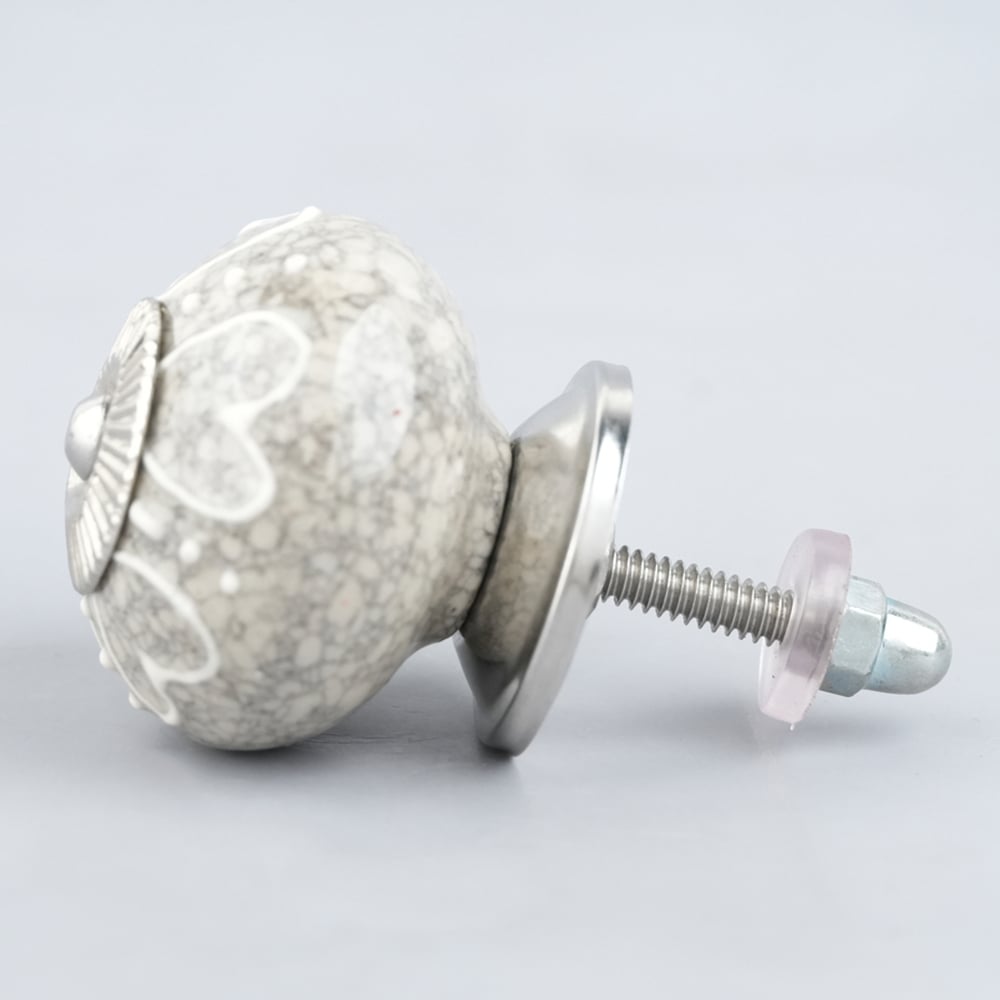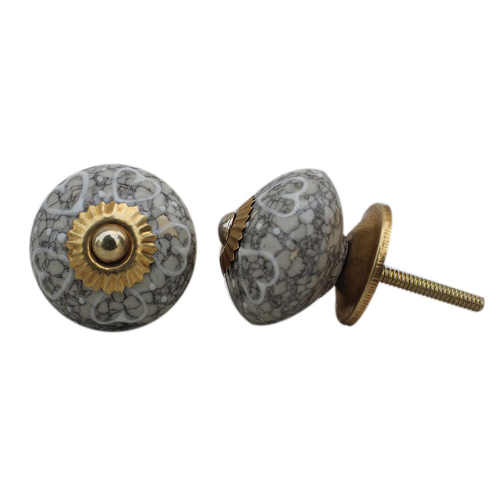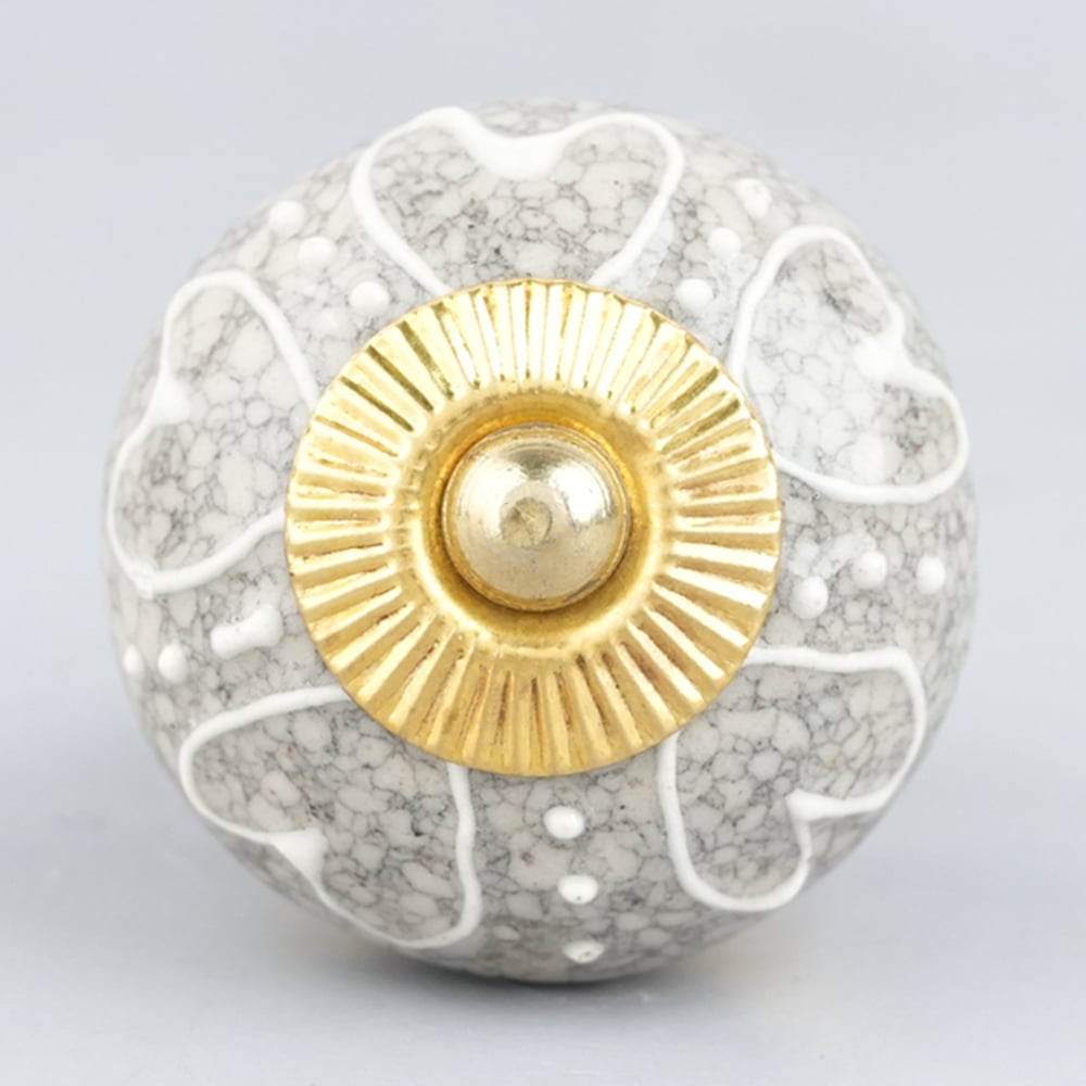 White Heart Crackle Ceramic Dresser Knob