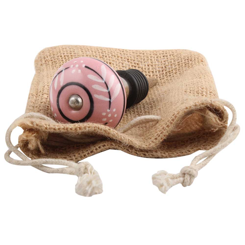 White Leaf Ceramic Wine Stopper.zinc alloy wine bottle stopper with attractive Jute Bag Packaging.