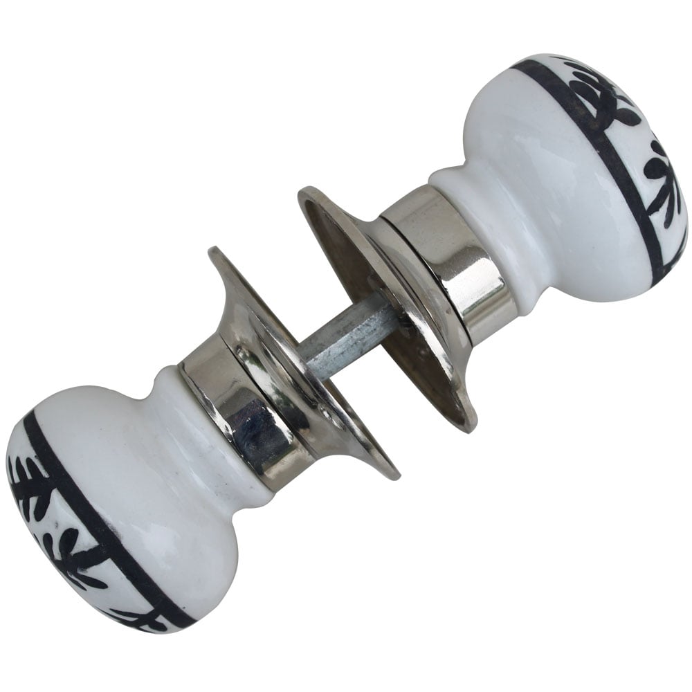 White Leaf Mortice Door Handles 2.25