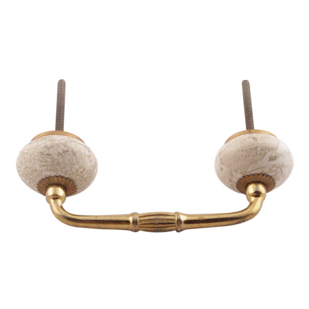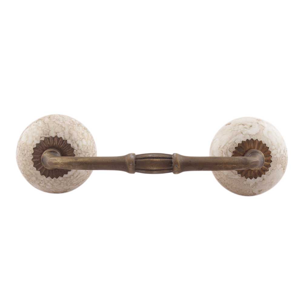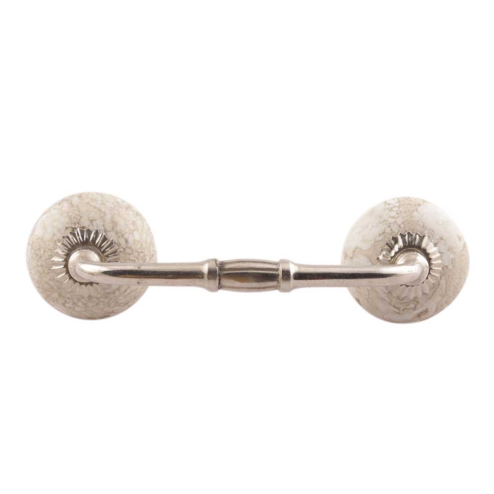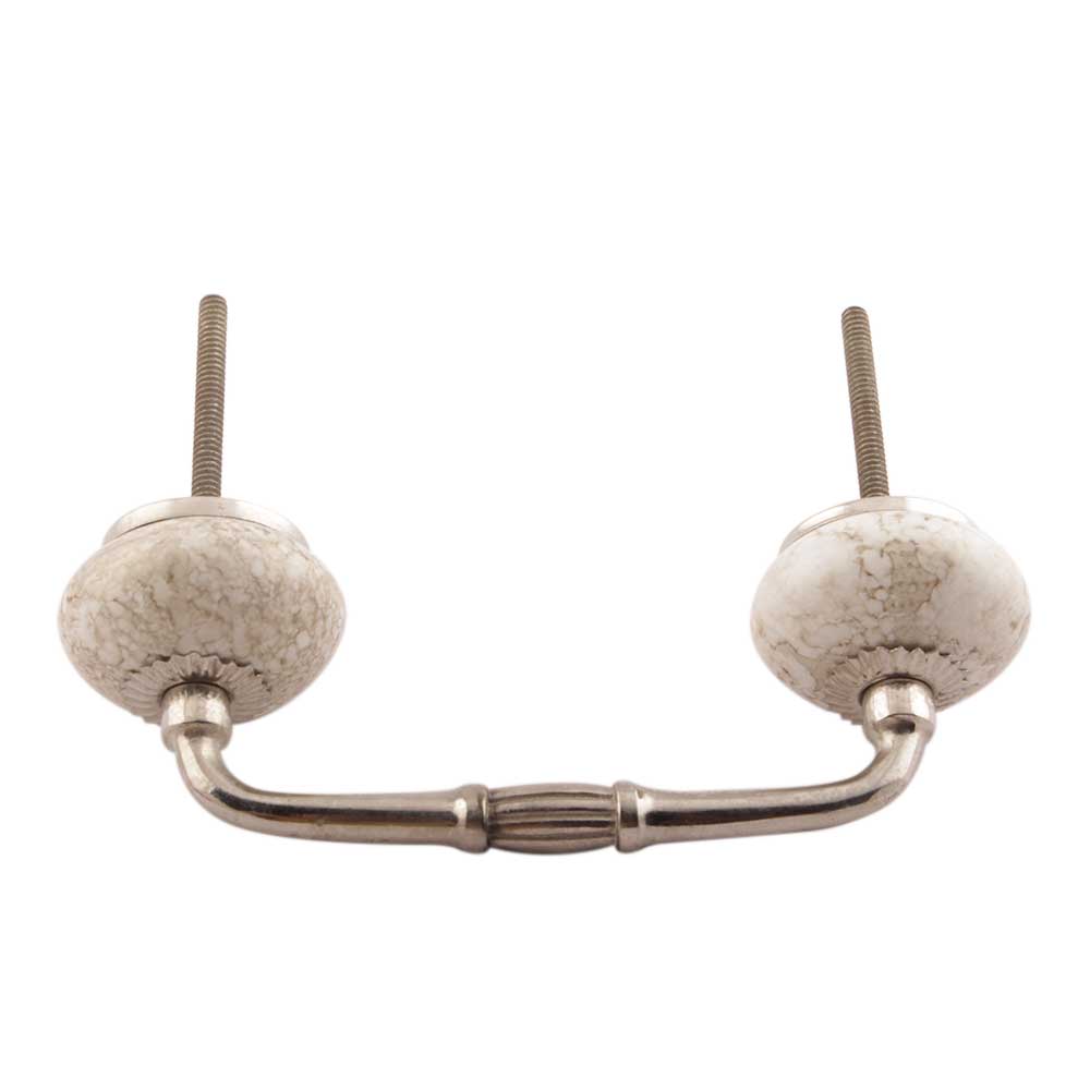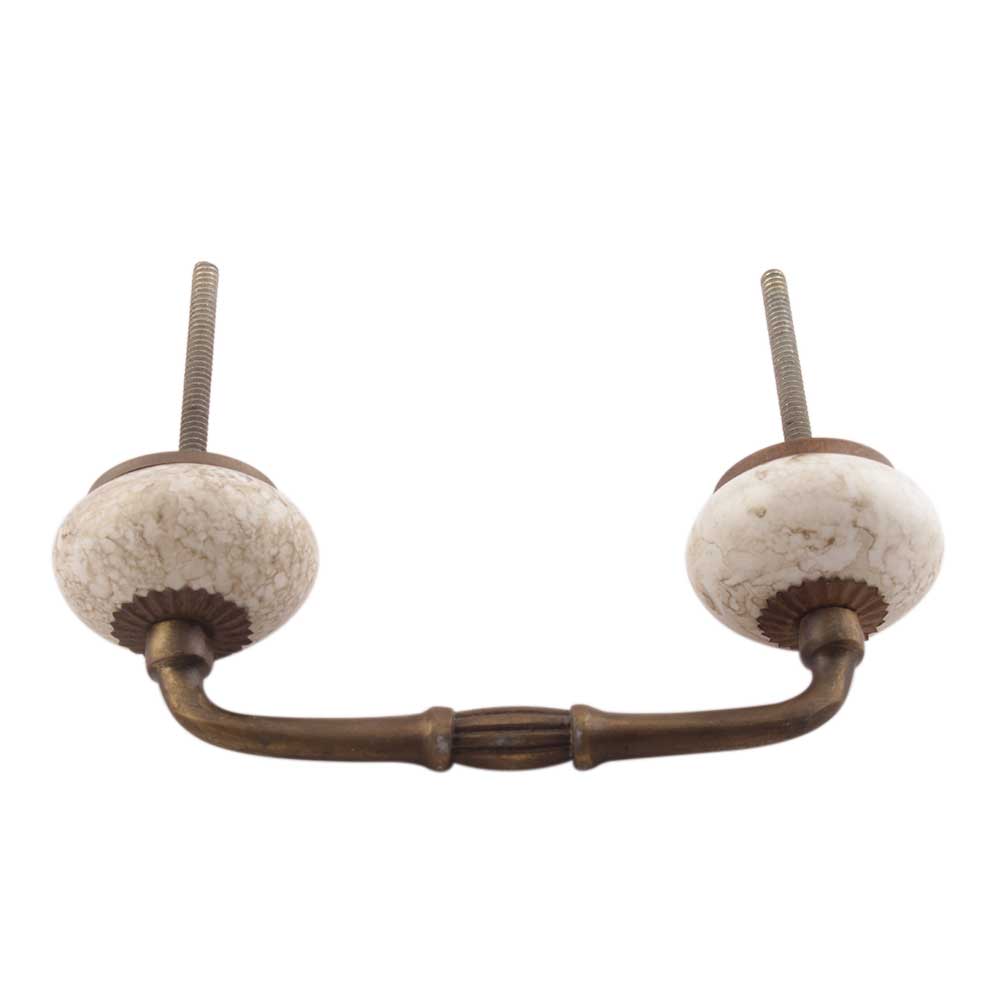 White Marble Ceramic Floral Bridge Handles. Ideal for Drawer, Dresser, Cabinet, Wardrobe, Cupboard and Almirah etc.