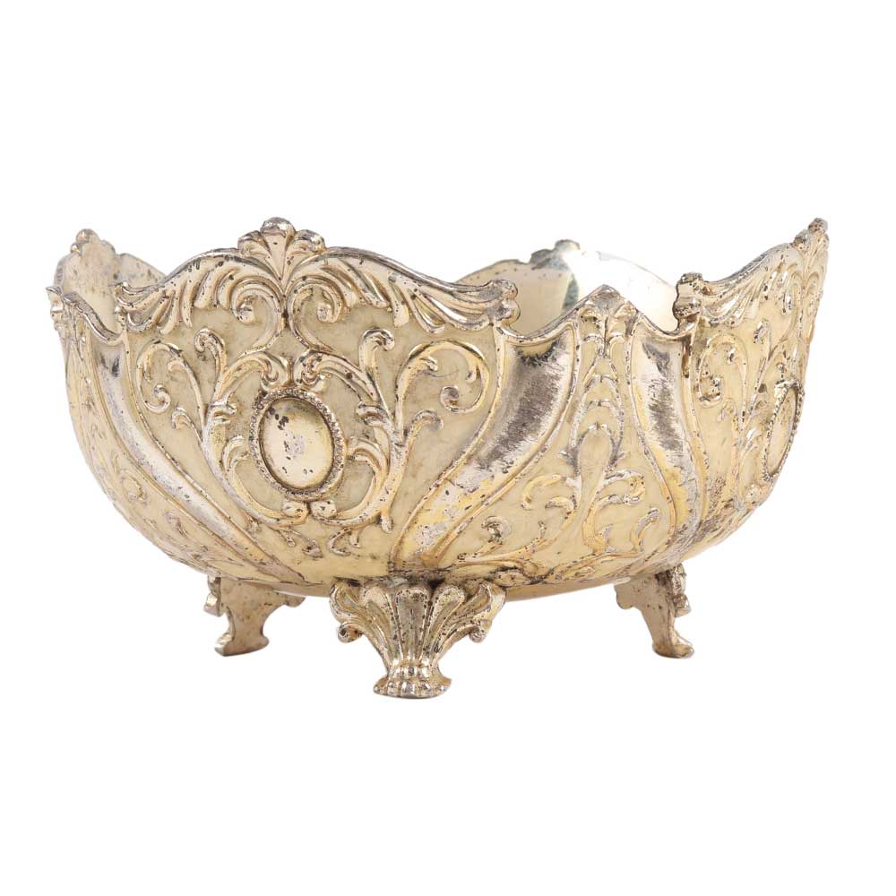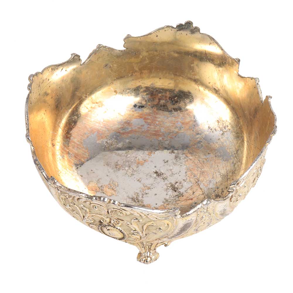 • White Metal Bowl With Scalloped Edges And Legs
