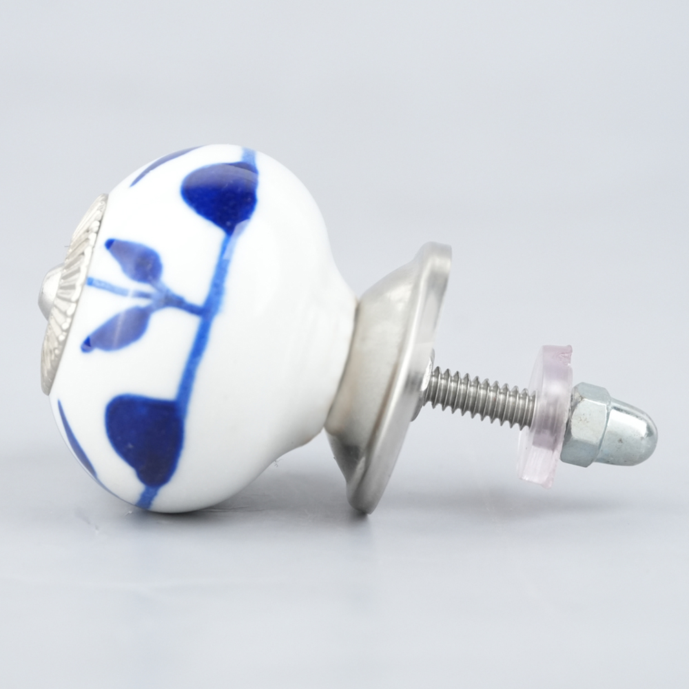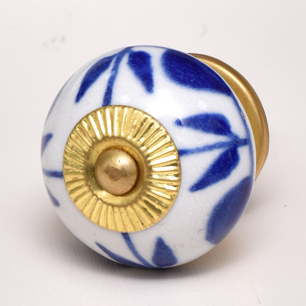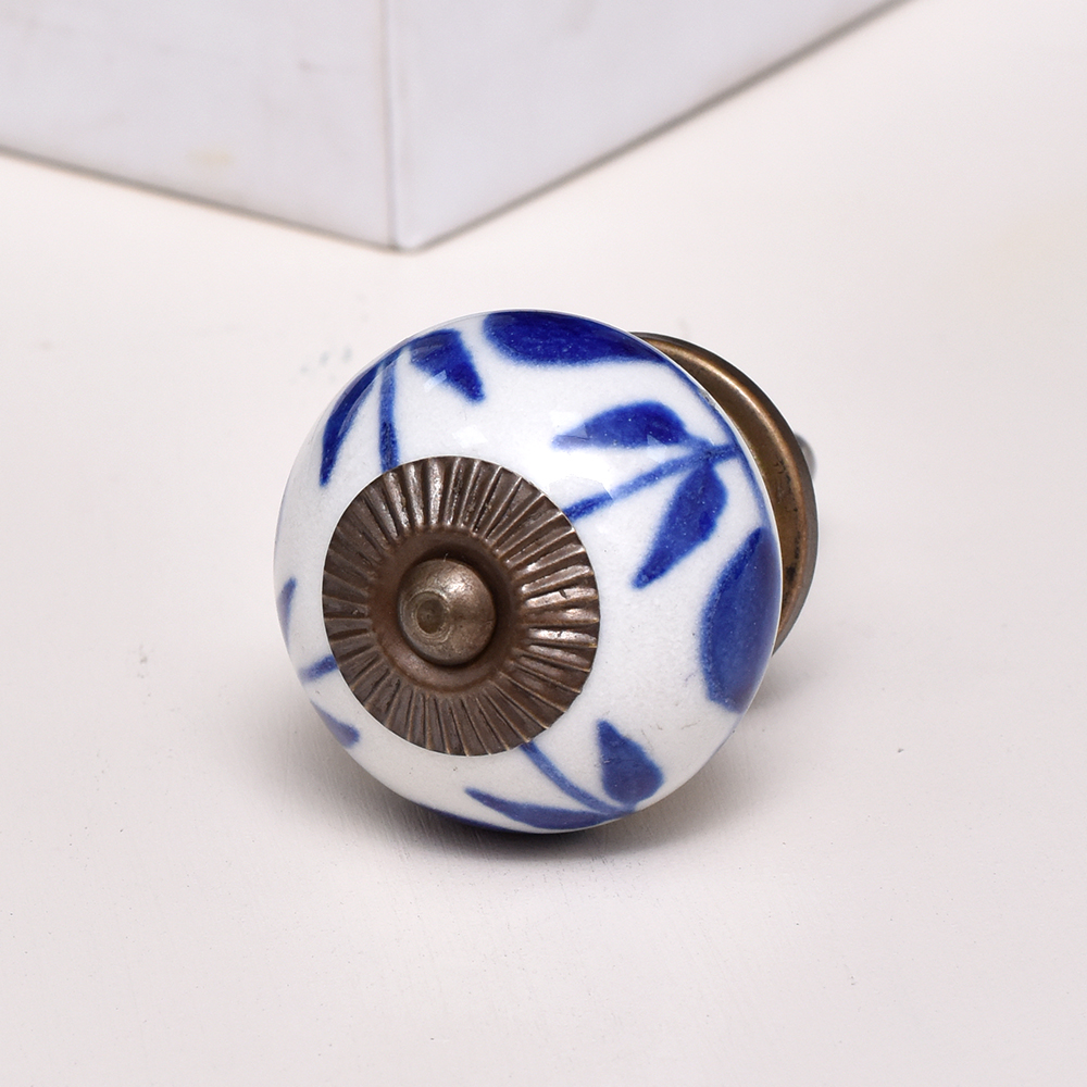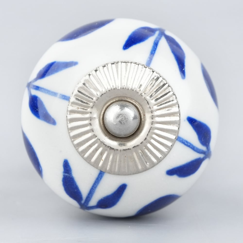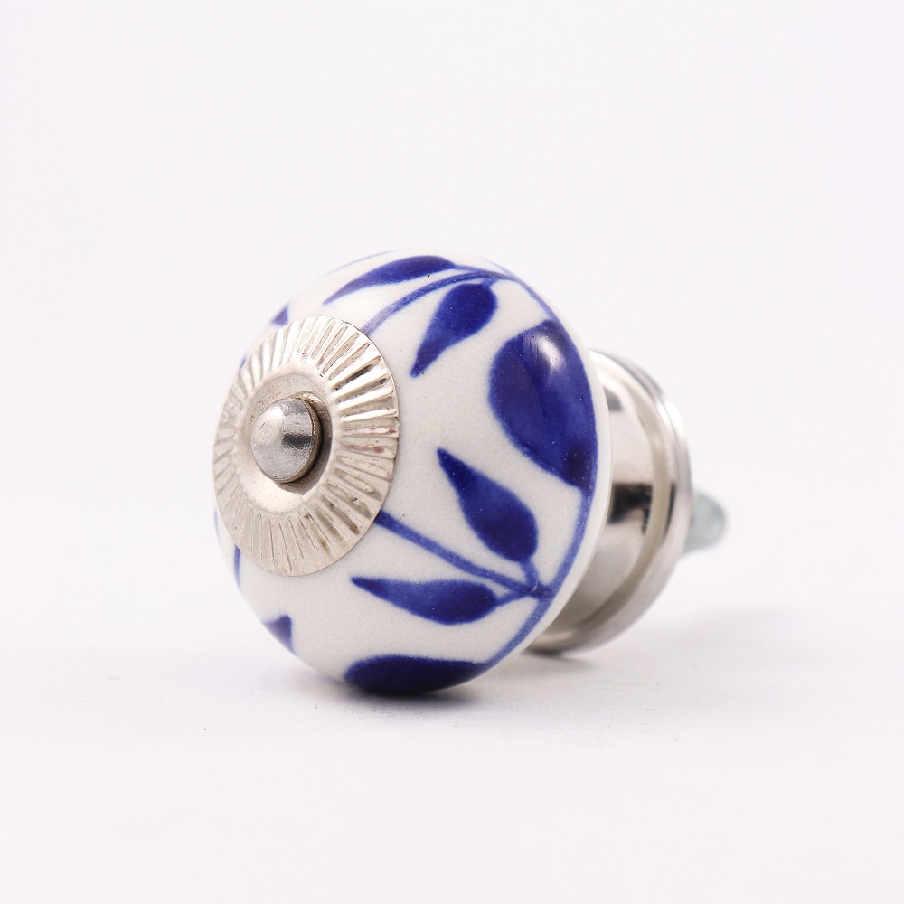 White Navy Blue Leaf Knob