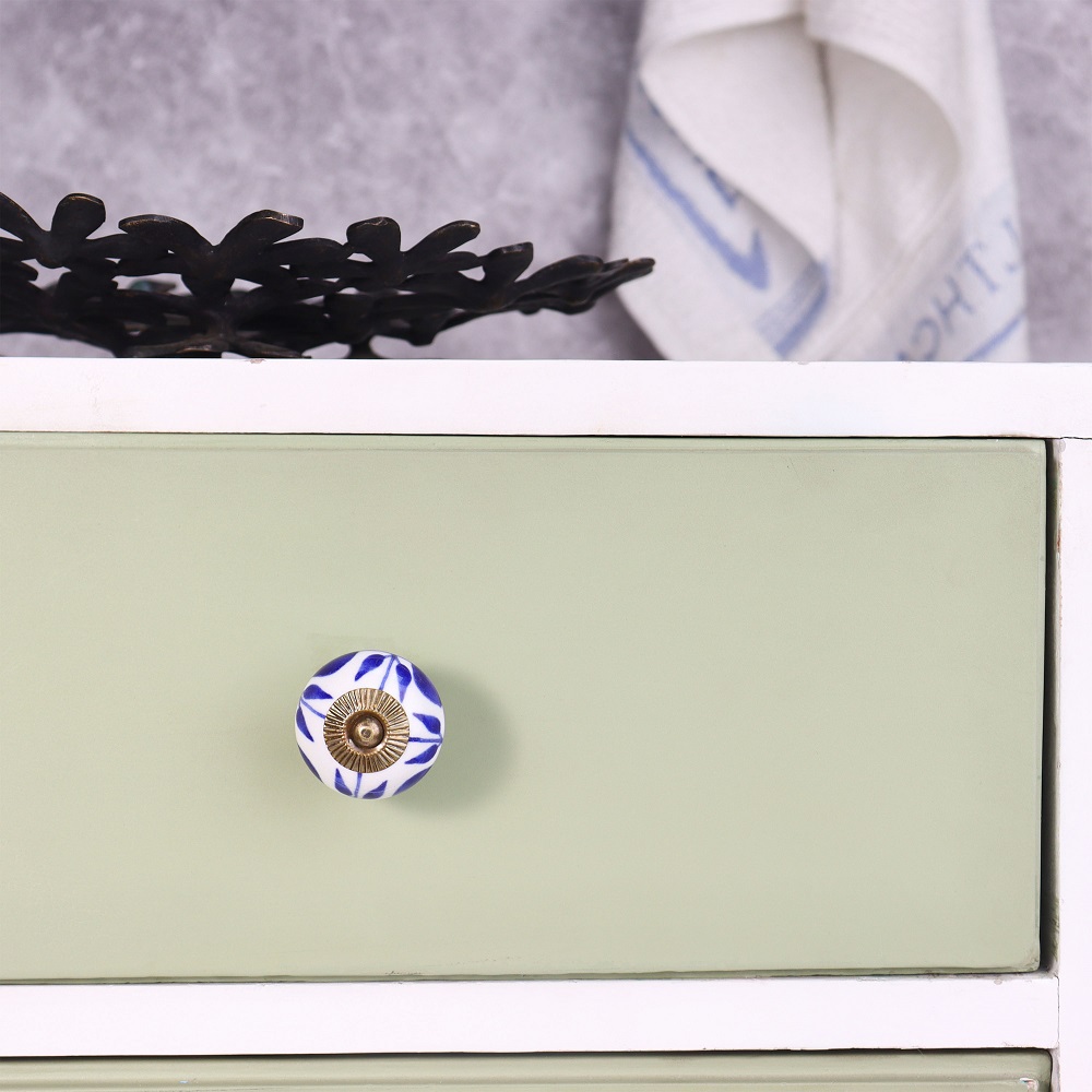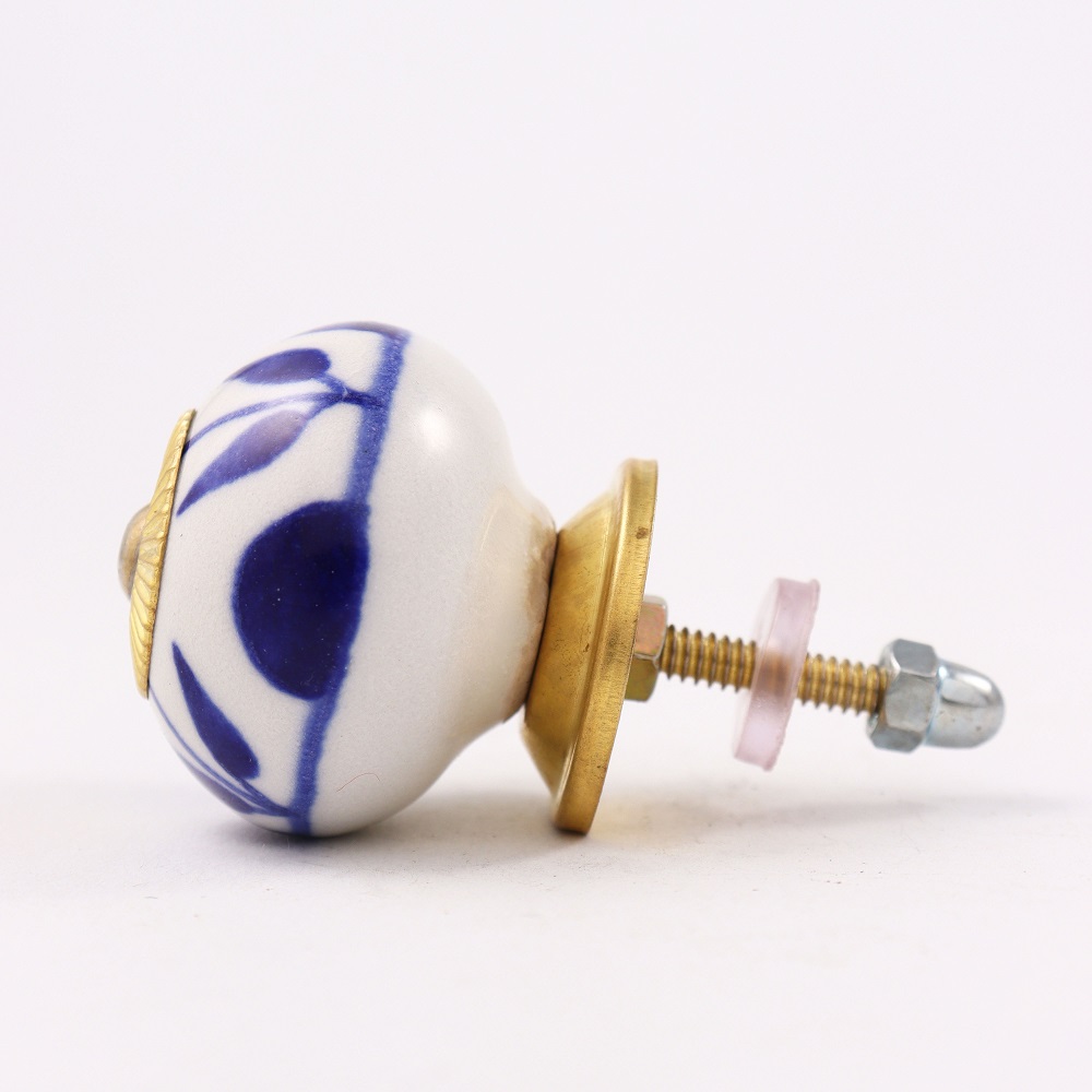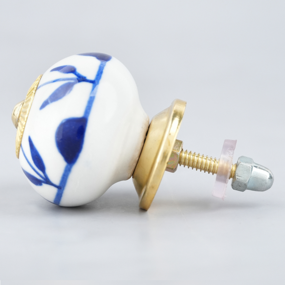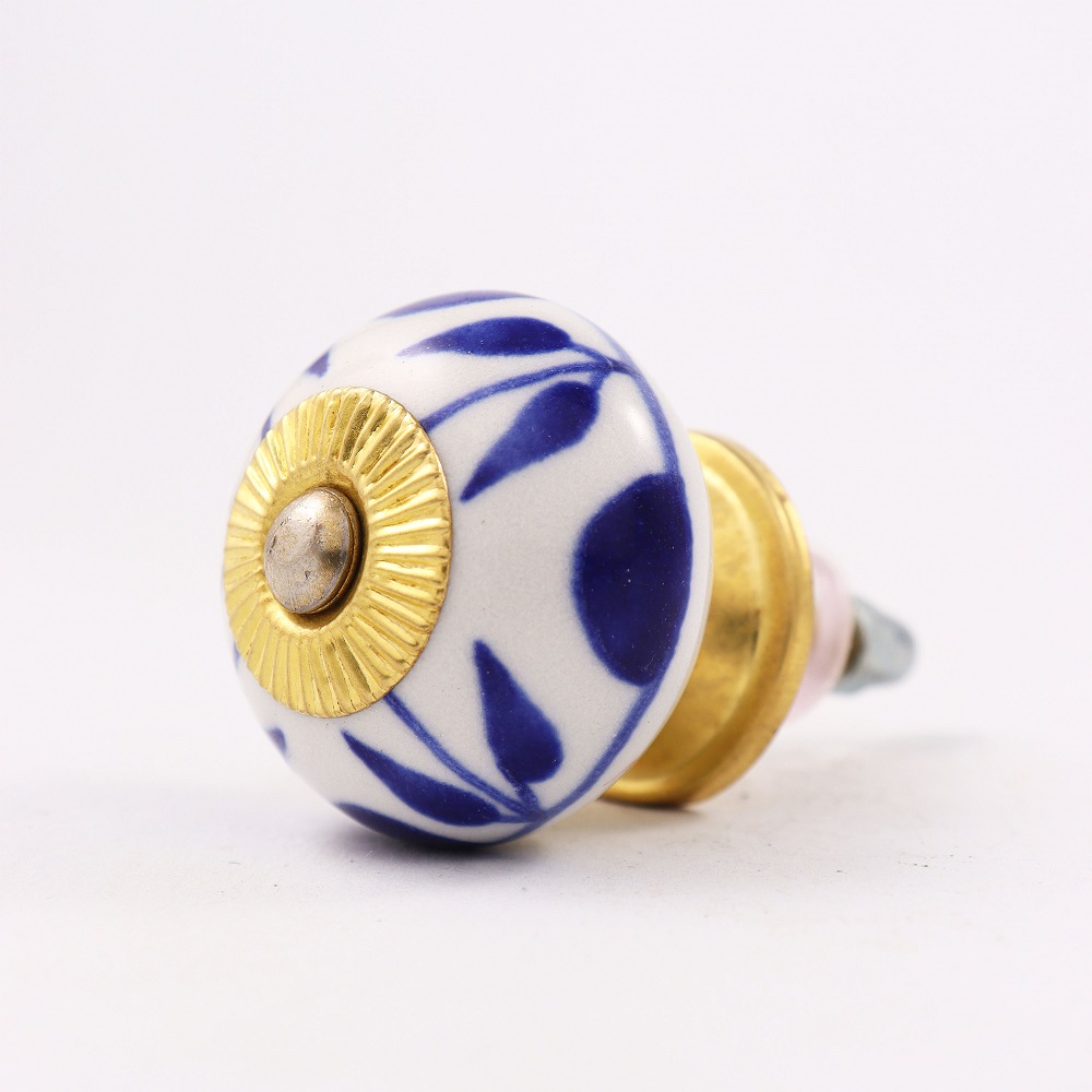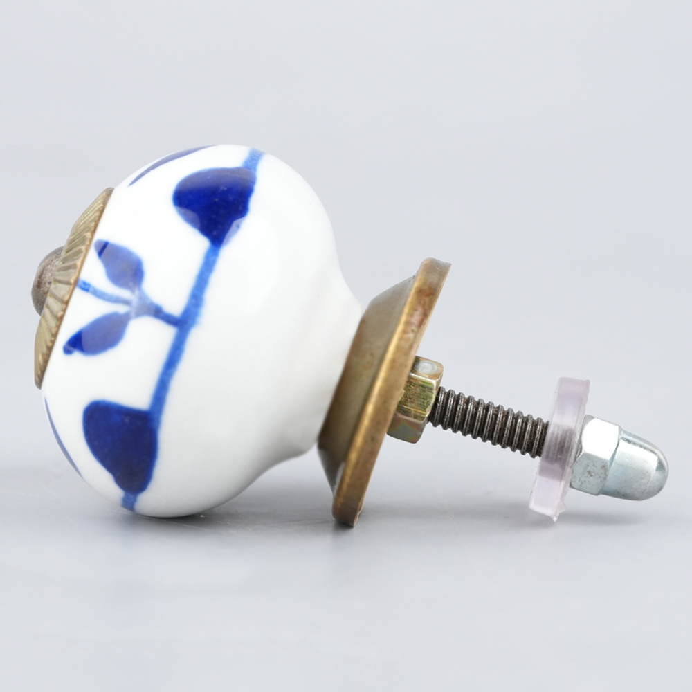 White Navy Blue Leaf Knob