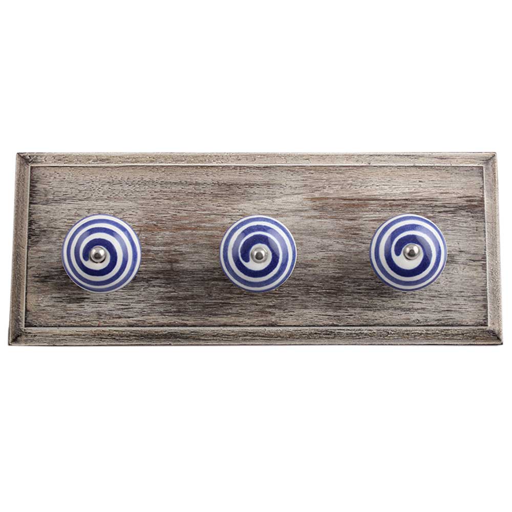 White Navy Blue Strip Wooden Hooks. A Perfect Complement to the Soft Tone of the Wood are these White Traditional Hat Coat Hook Made of Genuine Porcelain and Brass. It can be use to Hang Jewellery, Leashes, Towels, Scarves, Light Weight Sweaters, Caps Etc.
