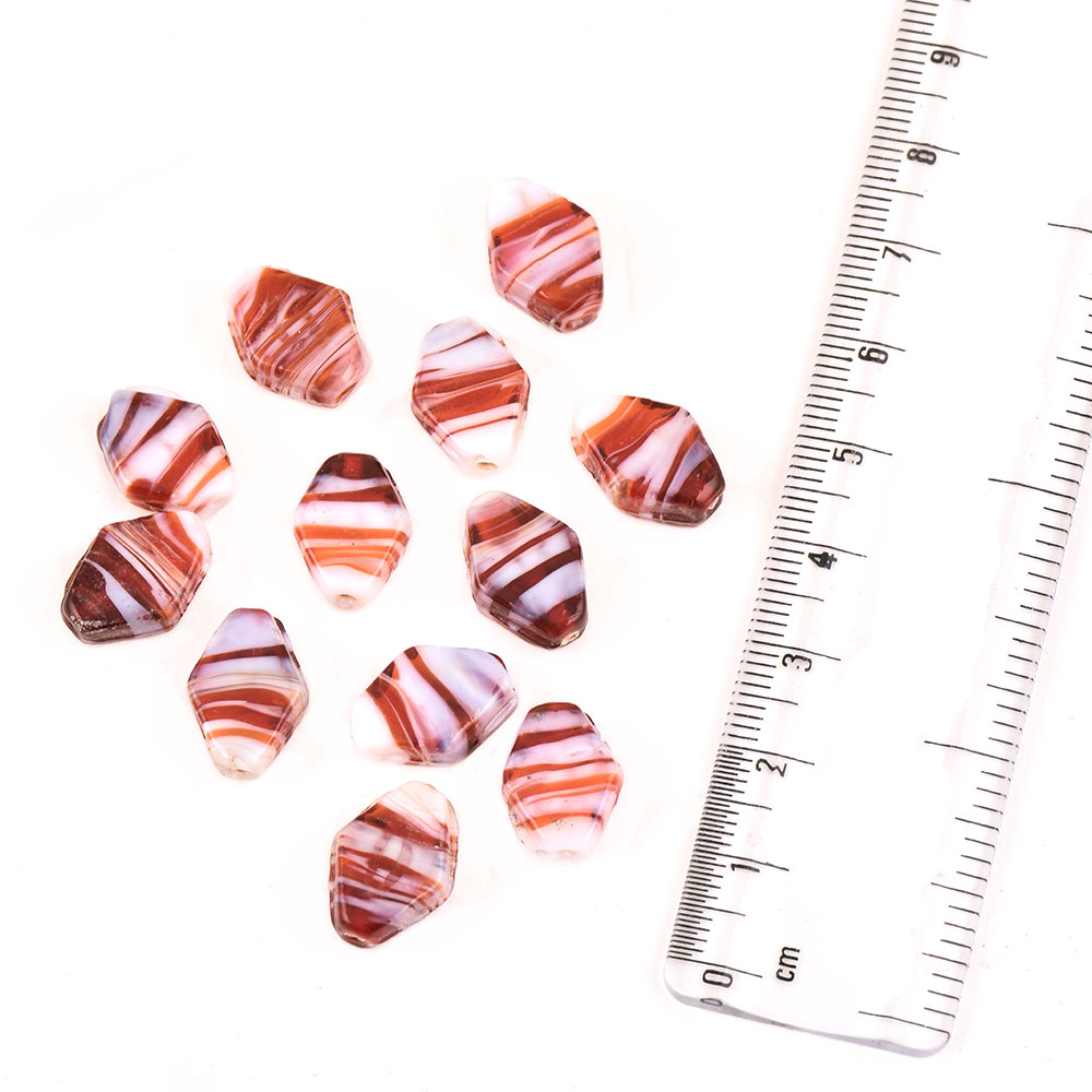 White Orange Striped Kite Shaped Loose Glass Jewelry Beads (12 in Pack)