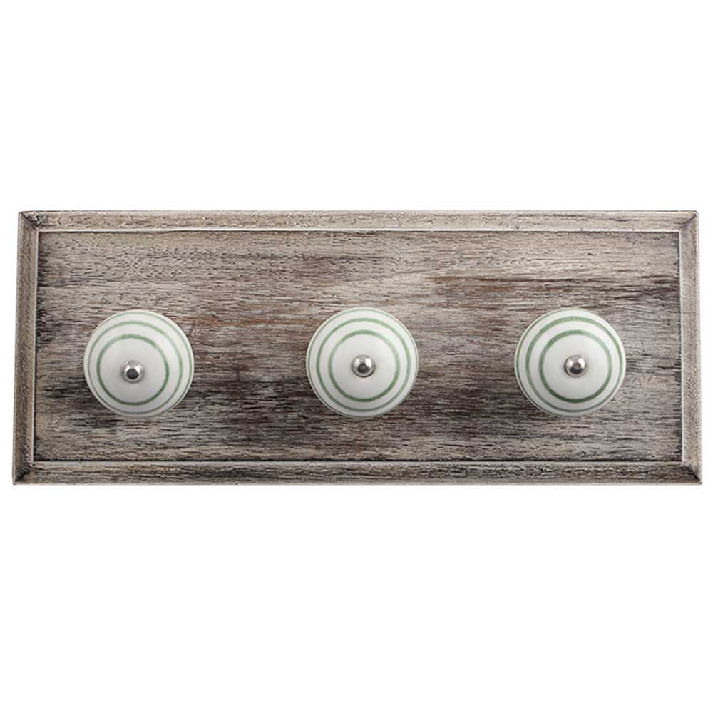 White Pea Green Strip Wooden Hooks. A Perfect Complement to the Soft Tone of the Wood are these White Traditional Hat Coat Hook Made of Genuine Porcelain and Brass. It can be use to Hang Jewellery, Leashes, Towels, Scarves, Light Weight Sweaters, Caps Etc.