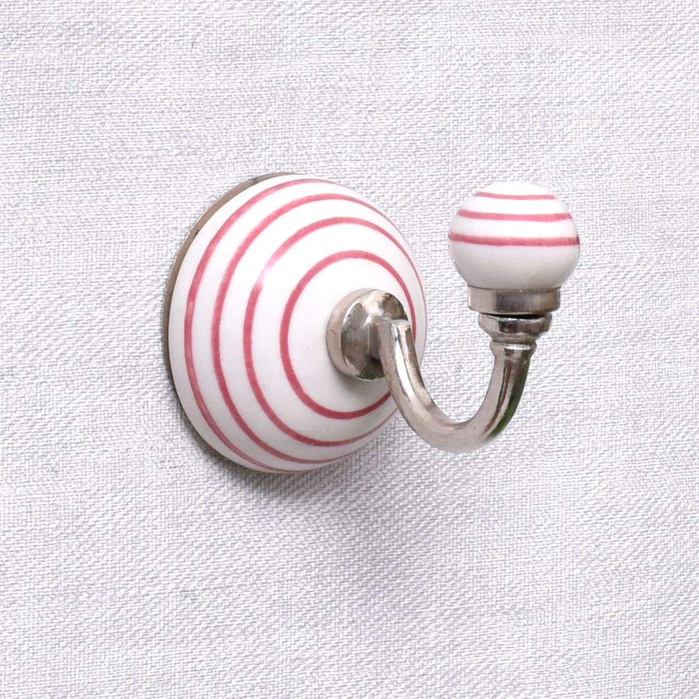 White Pink Striped Wall Hooks. When Put on Wall or Cabinet It is An Art in Itself. This Hook is Strong Enough to Hold Your Cloths, Keys, Tea Cups, Coffee Mugs, Hand Towels Etc.