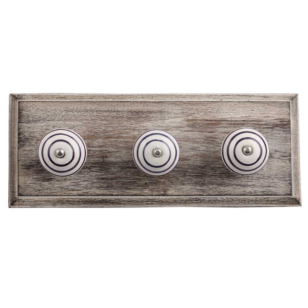 White Purple Strip Wooden Hooks. A Perfect Complement to the Soft Tone of the Wood are these White Traditional Hat Coat Hook Made of Genuine Porcelain and Brass. It can be use to Hang Jewellery, Leashes, Towels, Scarves, Light Weight Sweaters, Caps Etc.