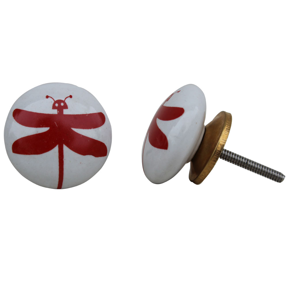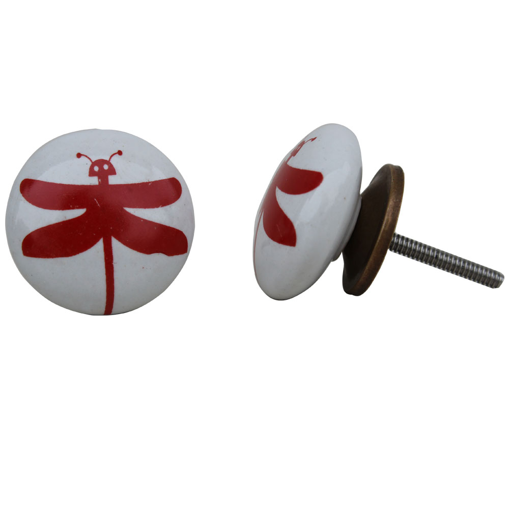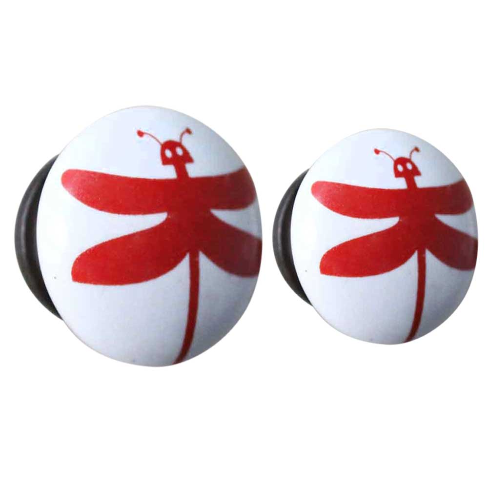 White Red Butterfly Flat Kids Knob