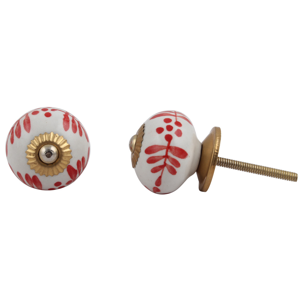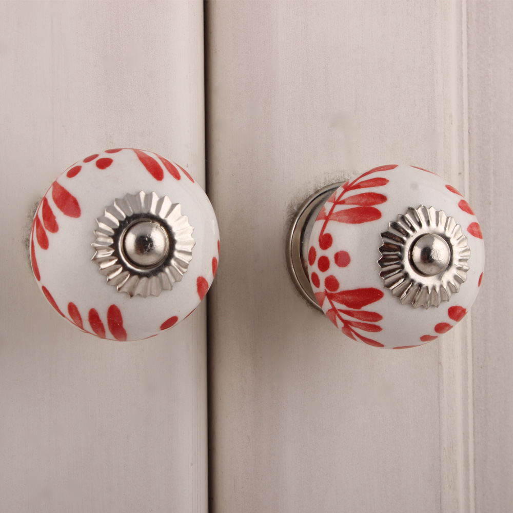 White Red Leaf Painted Knobs
