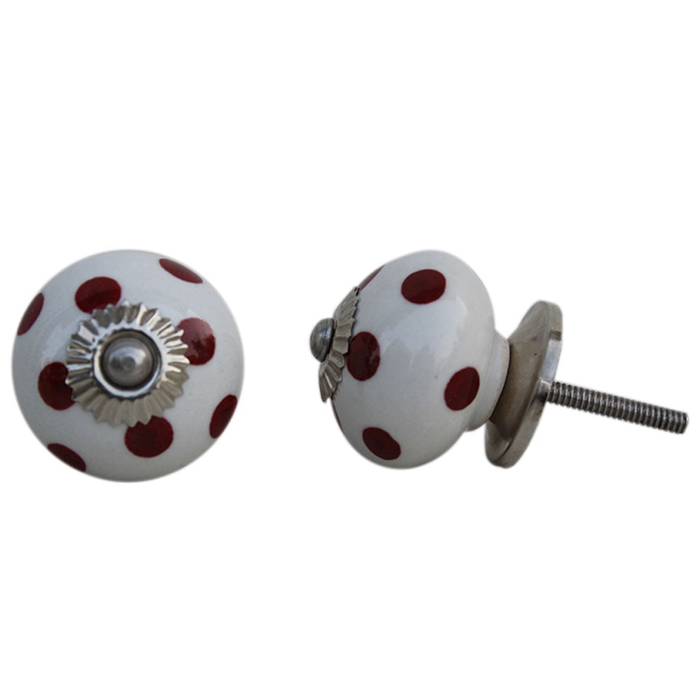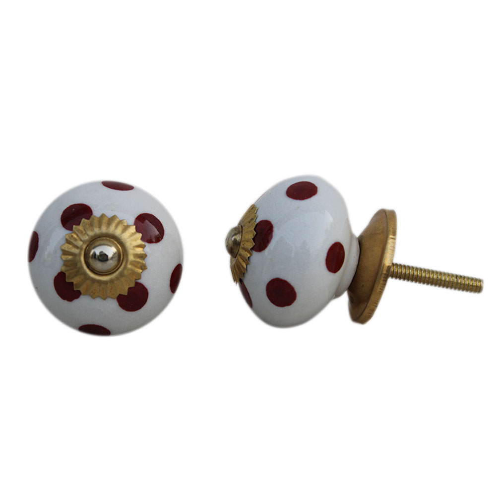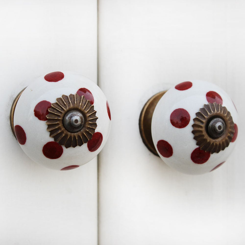 White Red Polka Ceramic Wardrobe Knob