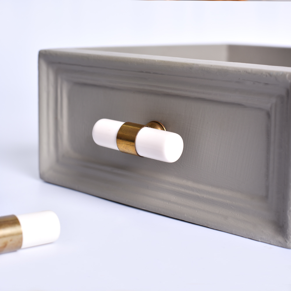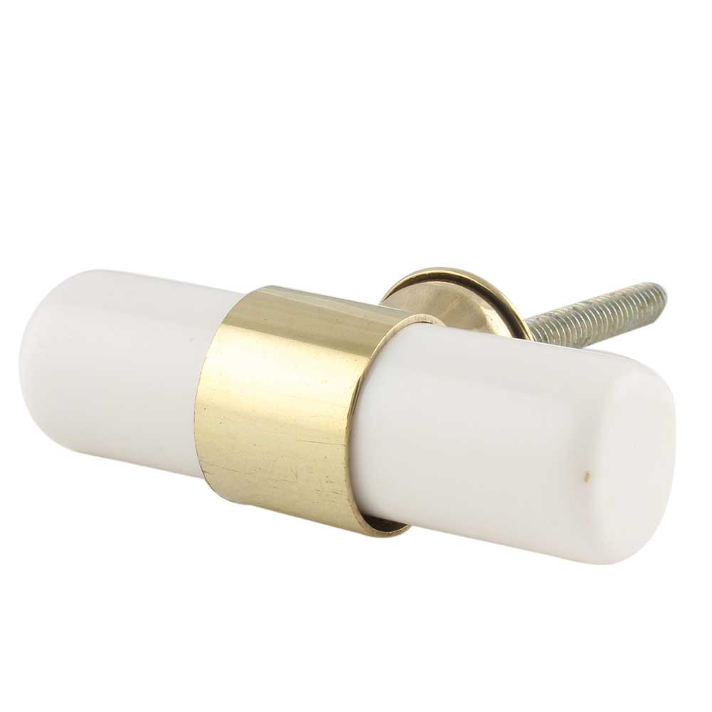 White Resin And Brass Tube Cabinet Knob