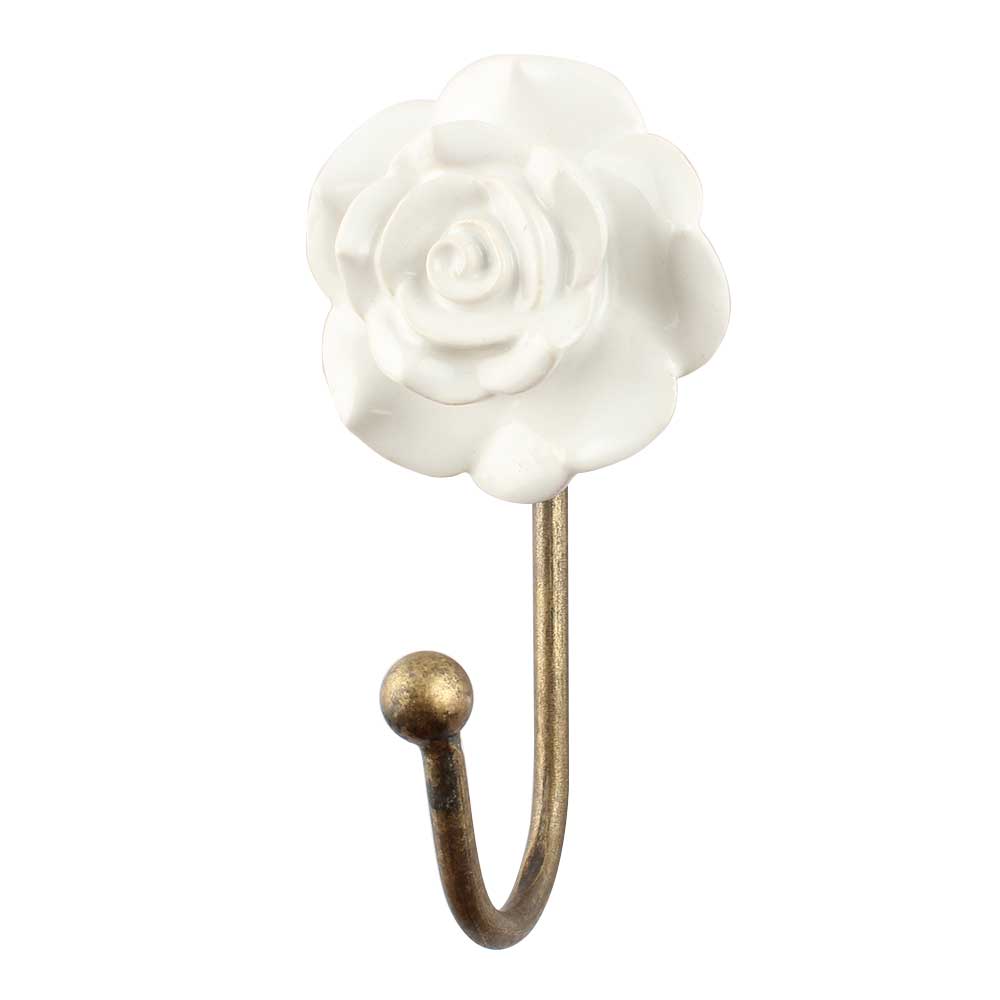 Material: Glazed ceramic with metal hook mount Finish: Smooth white glossy glaze with detailed rose petals Installation: Hidden mount system for a clean, seamless look