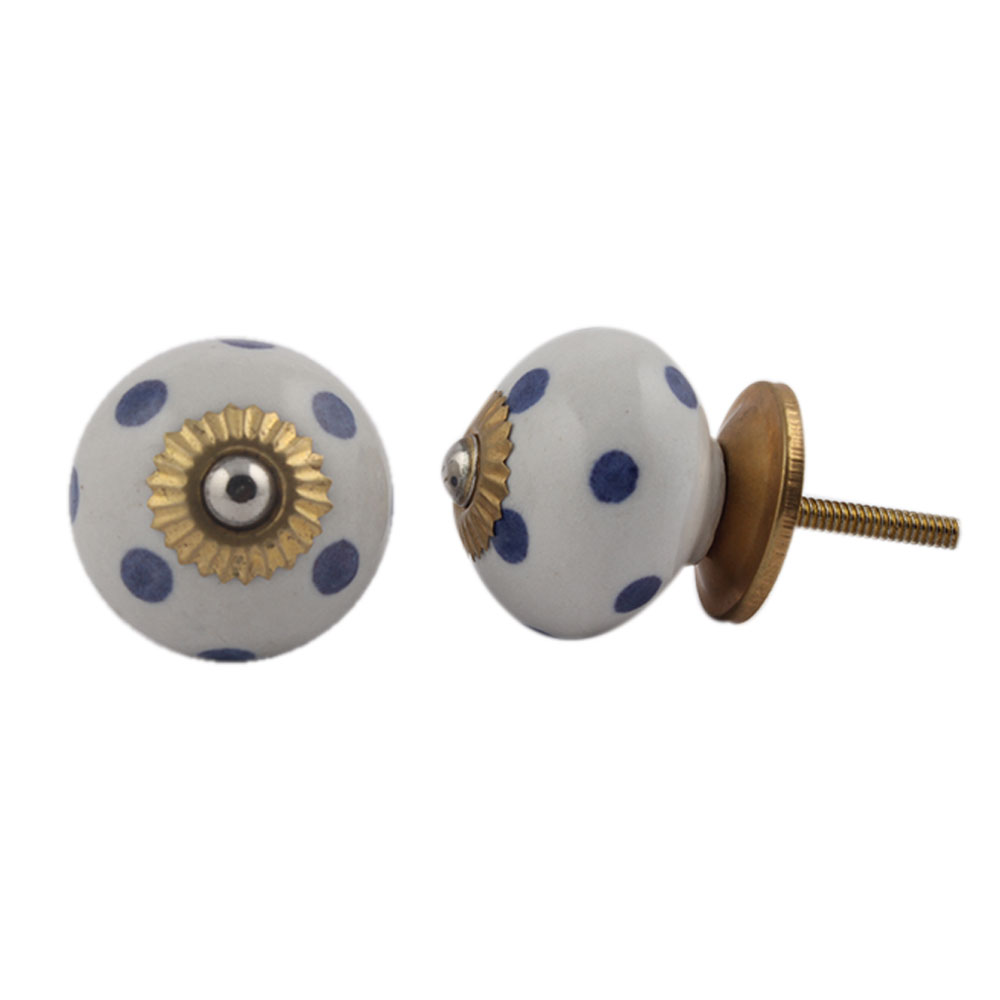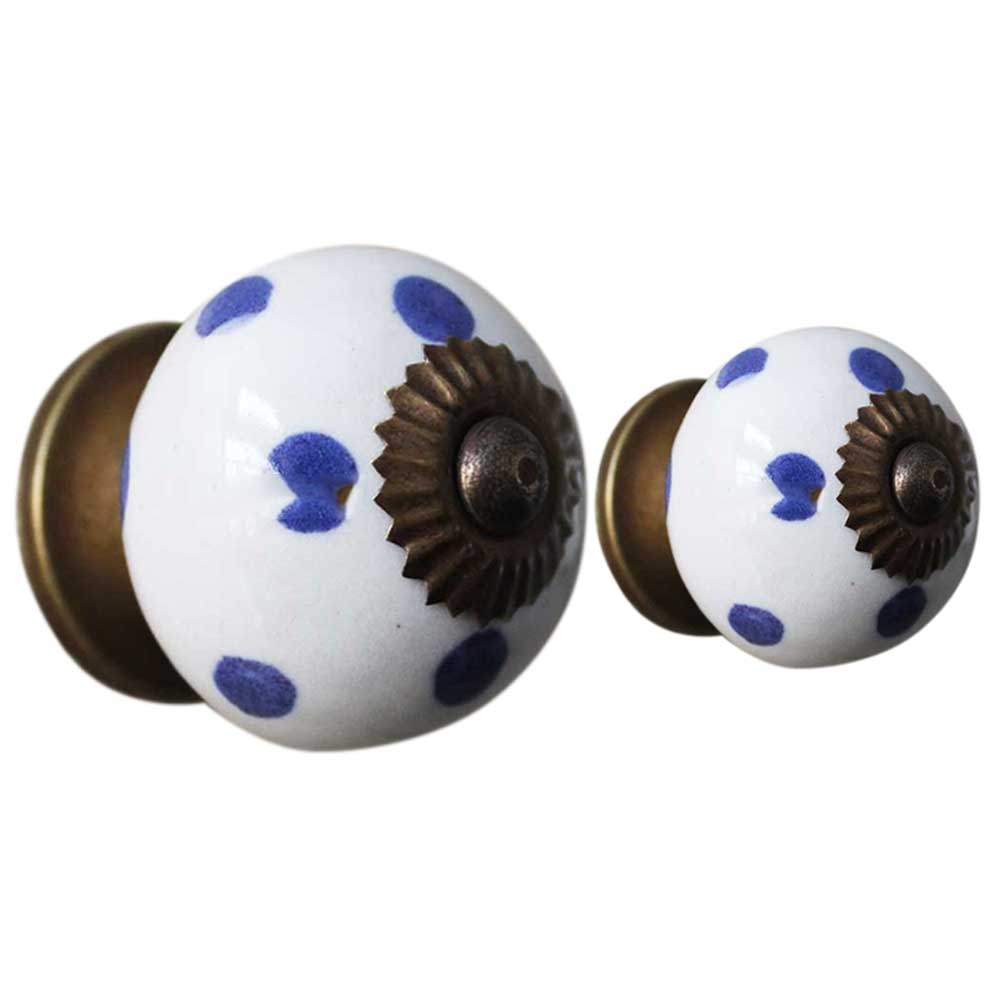 White Royal Blue Polka Dot Ceramic Drawer Knob