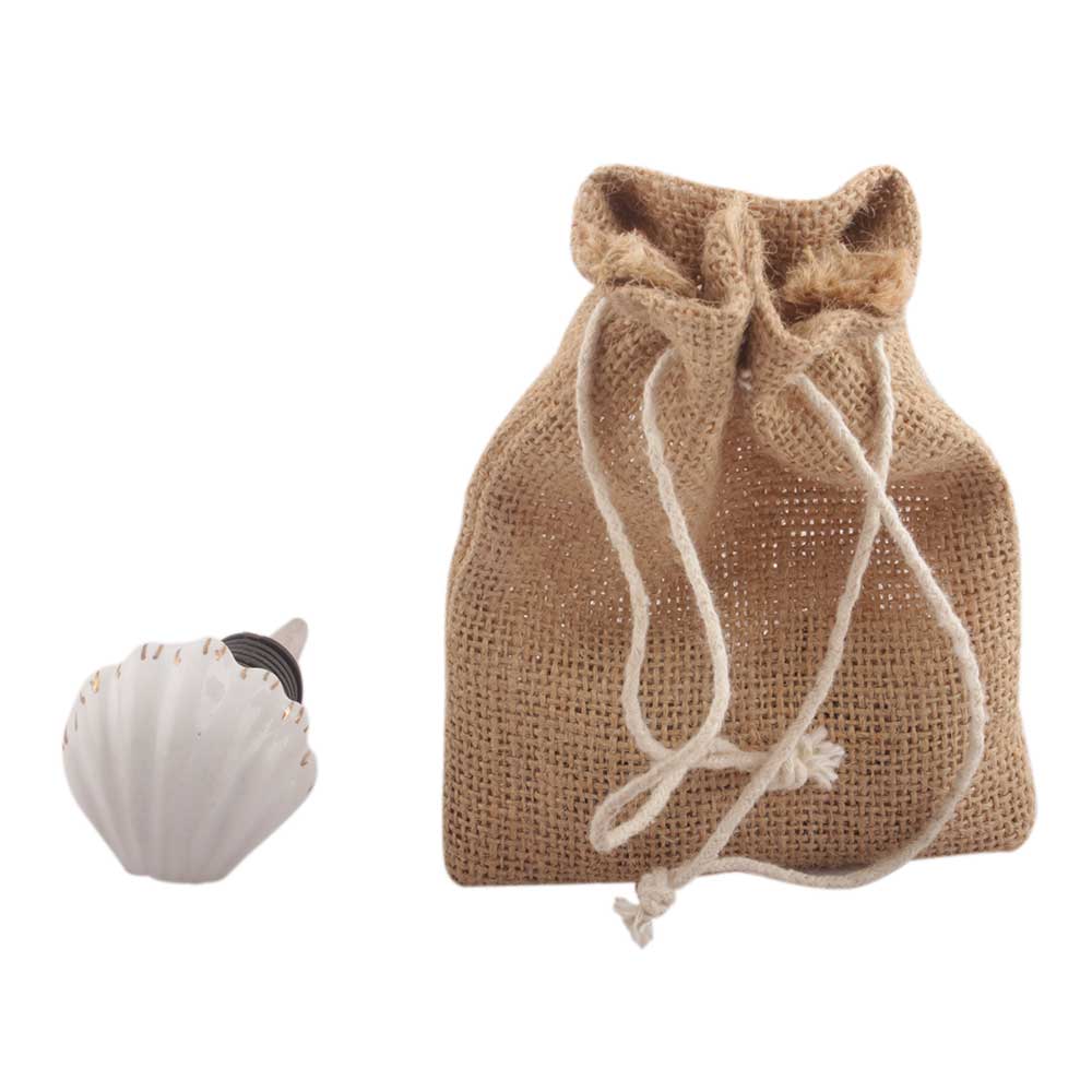 White Sea Shell Ceramic Wine Stopper. Zinc Alloy Wine Bottle Stopper with Attractive Jute Bag Packaging.