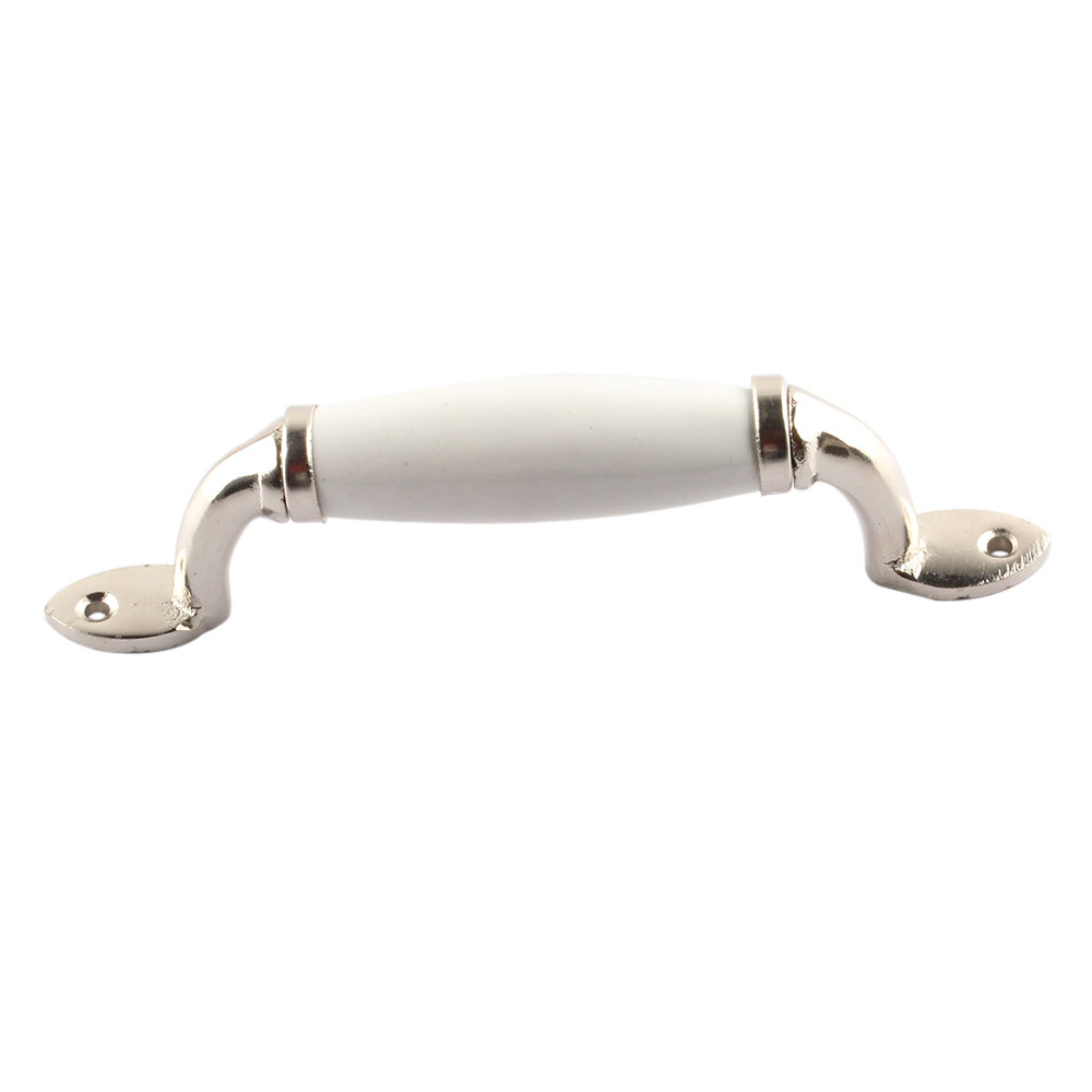 White Small Ceramic Silver Door Handles. Ideal for Drawer, Dresser, Cabinet, Wardrobe, Cupboard and Almirah.