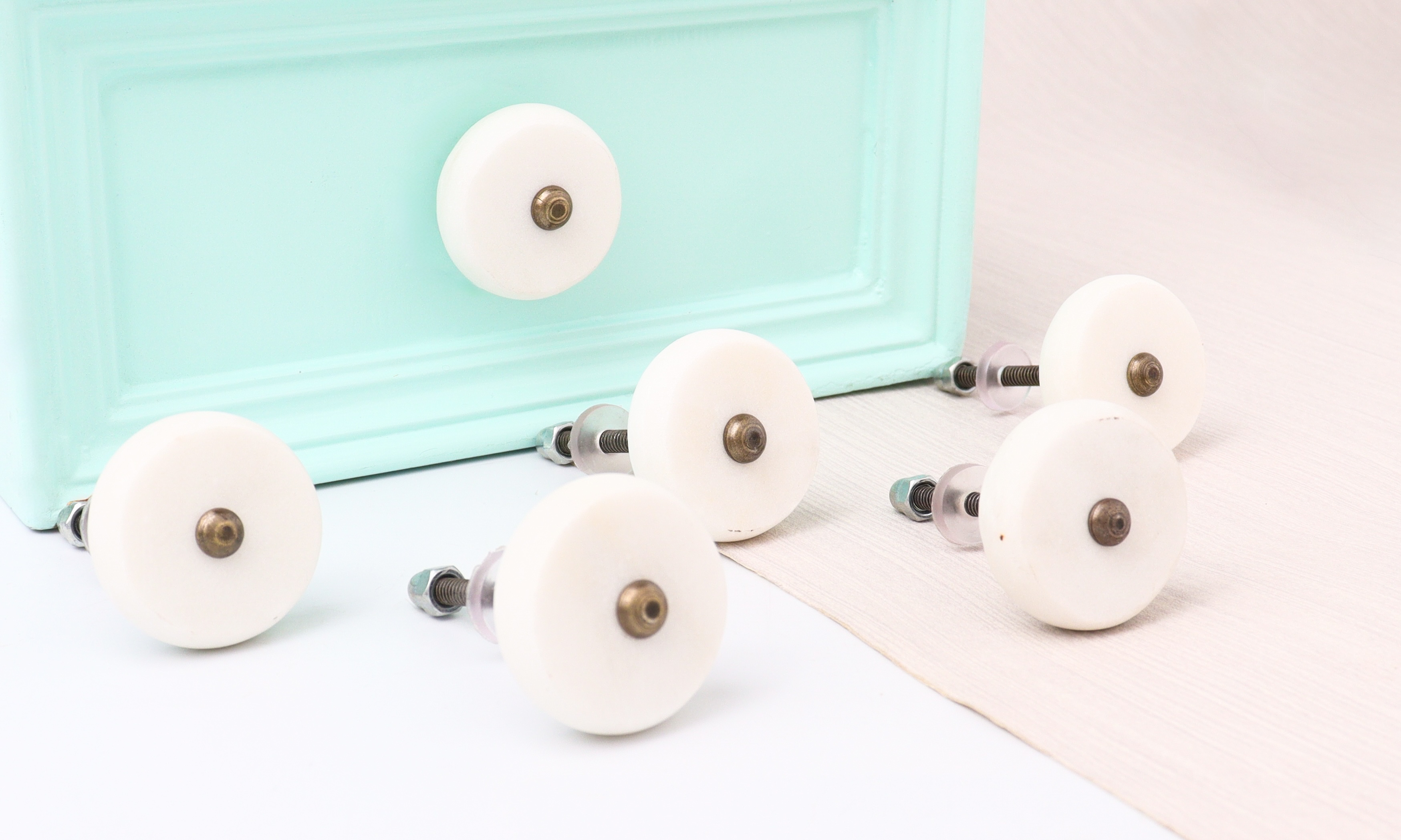 Indianshelf.com for bulk/wholesale orders.Indianshelf.us for personal purchases.The White Stone Flat Drawer Knob is a stylish and timeless addition that effortlessly enhances the beauty of your furniture. Whether you're redesigning your space or simply refreshing a few items, this knob is an ideal choice for infusing natural charm into your home.