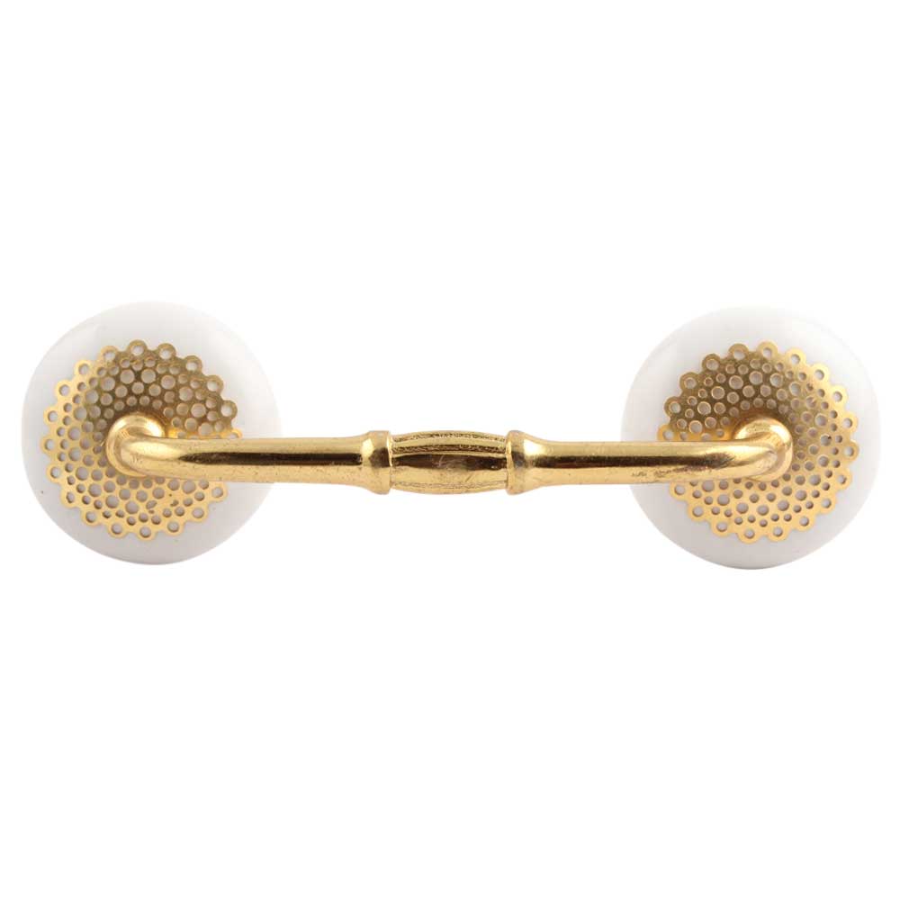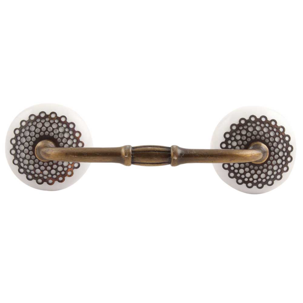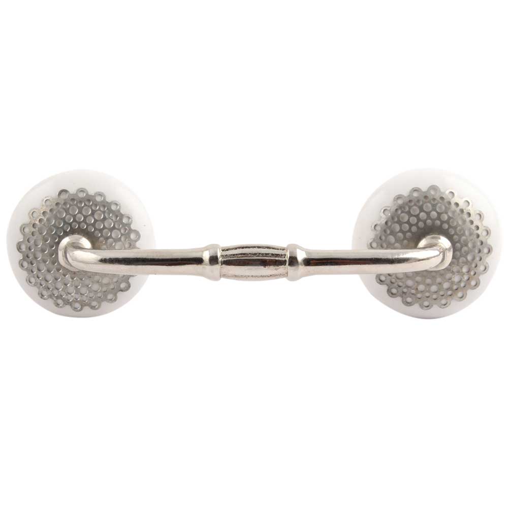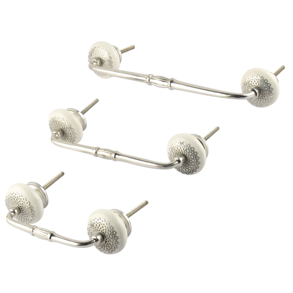 White Strewn Flat Ceramic Bridge Handle. Ideal for Drawer, Dresser, Cabinet, Wardrobe, Cupboard and Almirah.