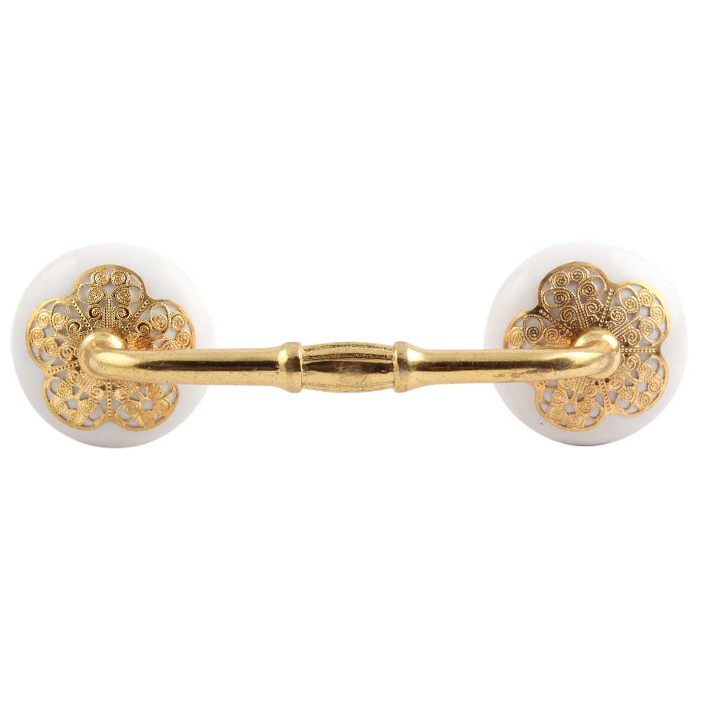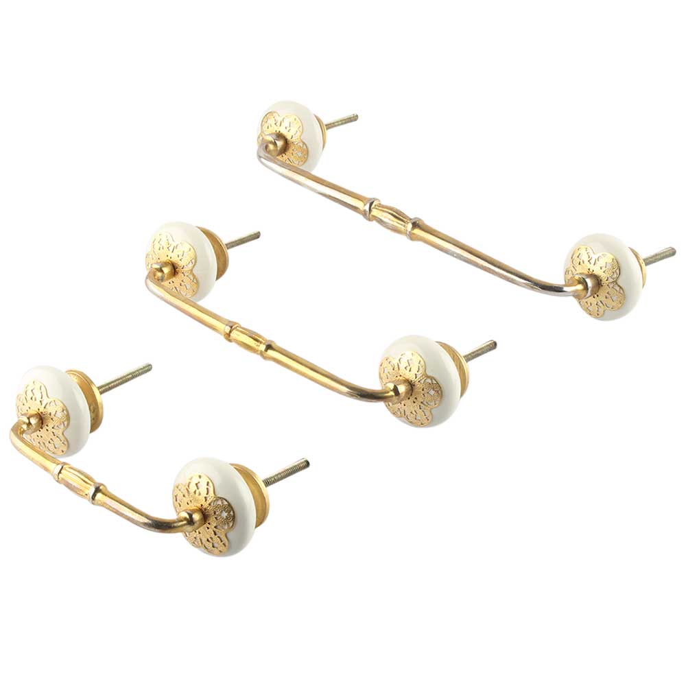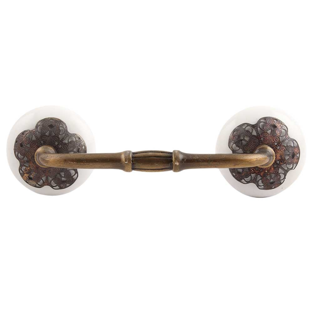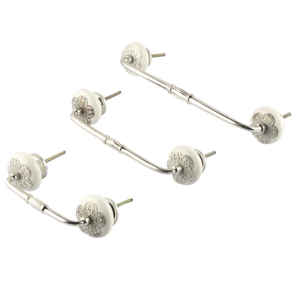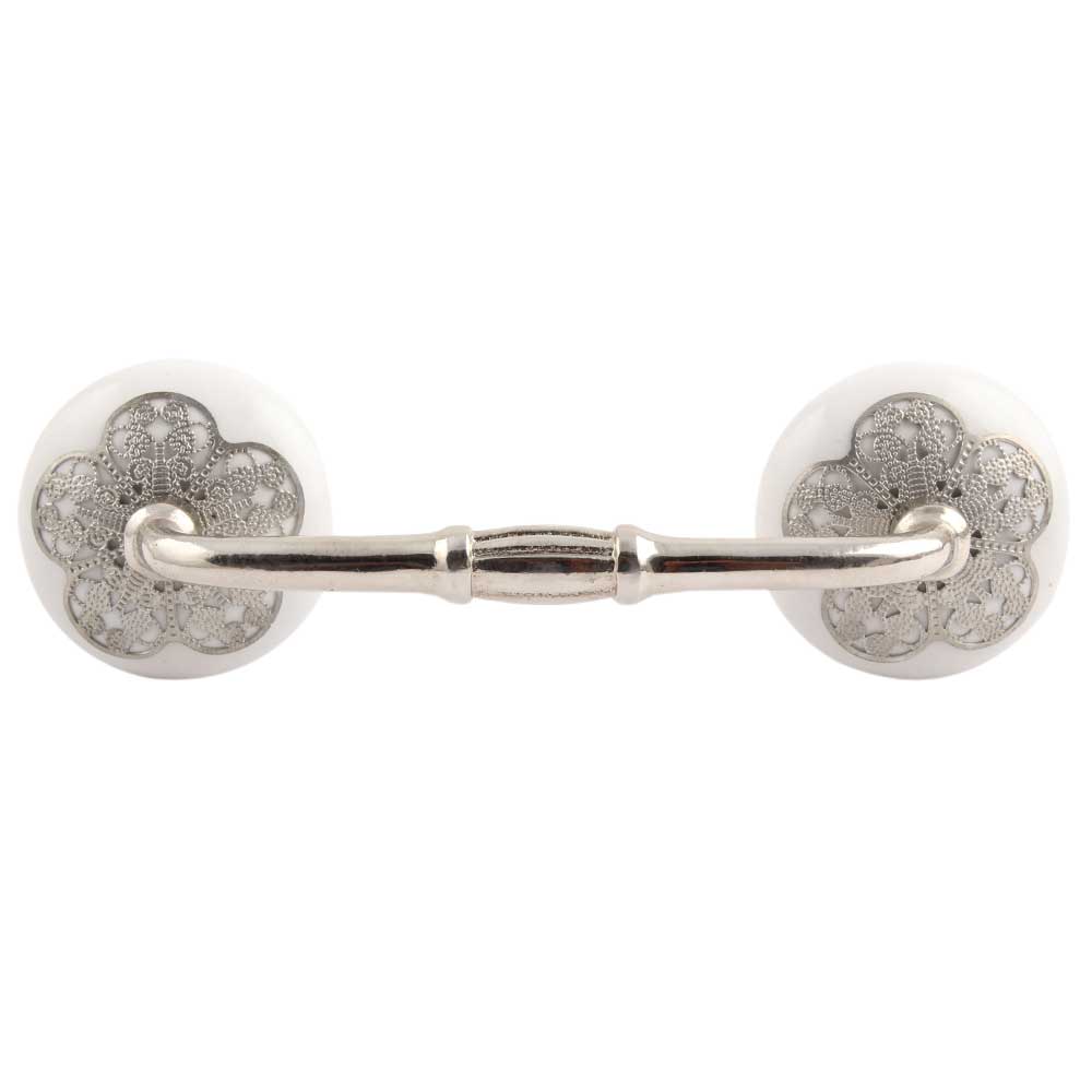 White Strewn Flat Ceramic Bridge Handle. Ideal for Drawer, Dresser, Cabinet, Wardrobe, Cupboard and Almirah.