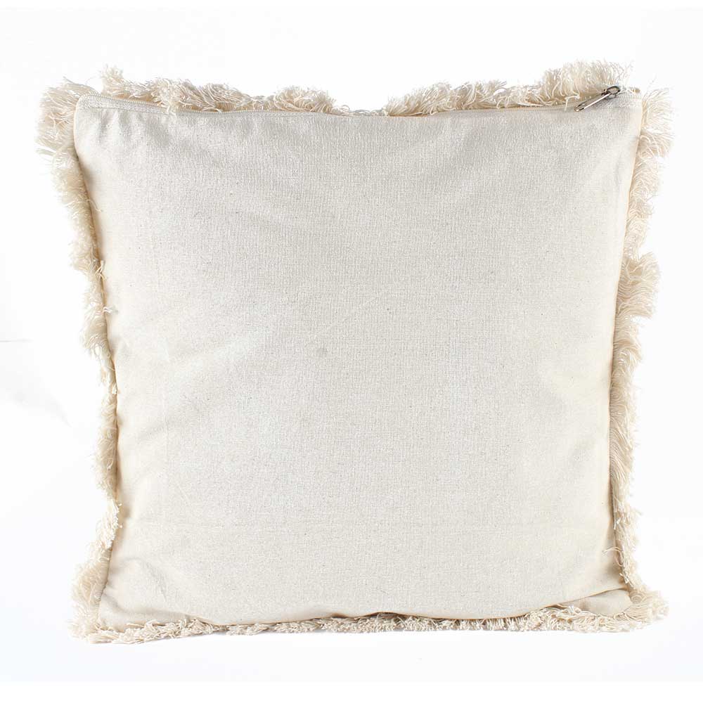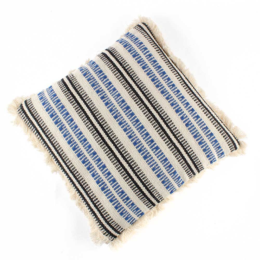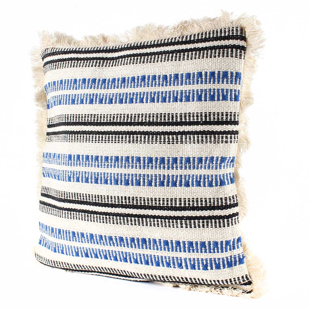 • White Striped Woven Fringe Pillow Cover