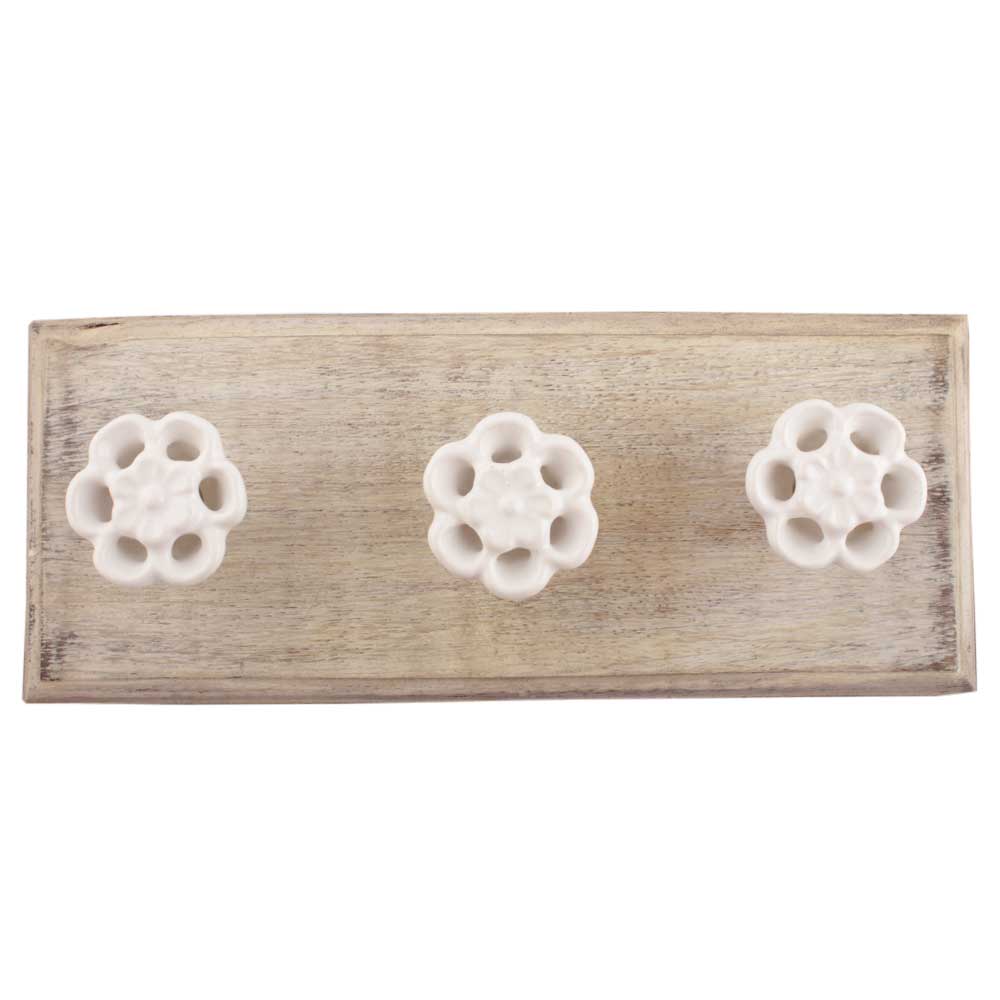 White Tiny Flower Ceramic Wooden Hooks