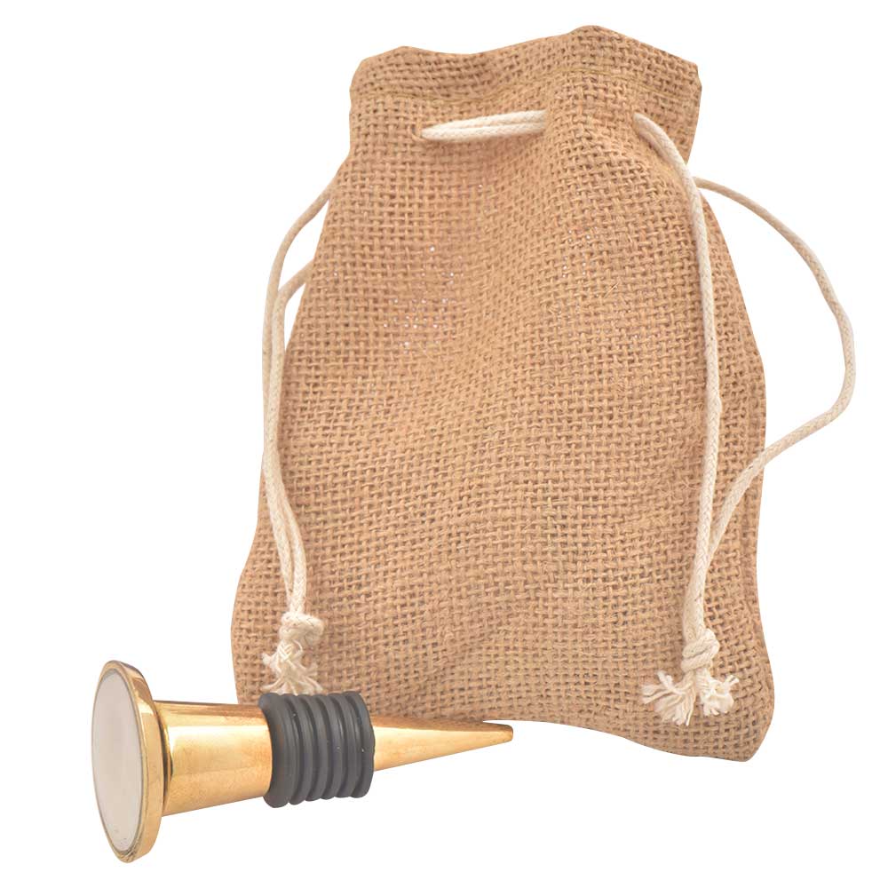 White Wheel Glass and Metal Wine Stopper. Zinc Alloy Wine Bottle Stopper with Attractive Jute Bag Packaging.