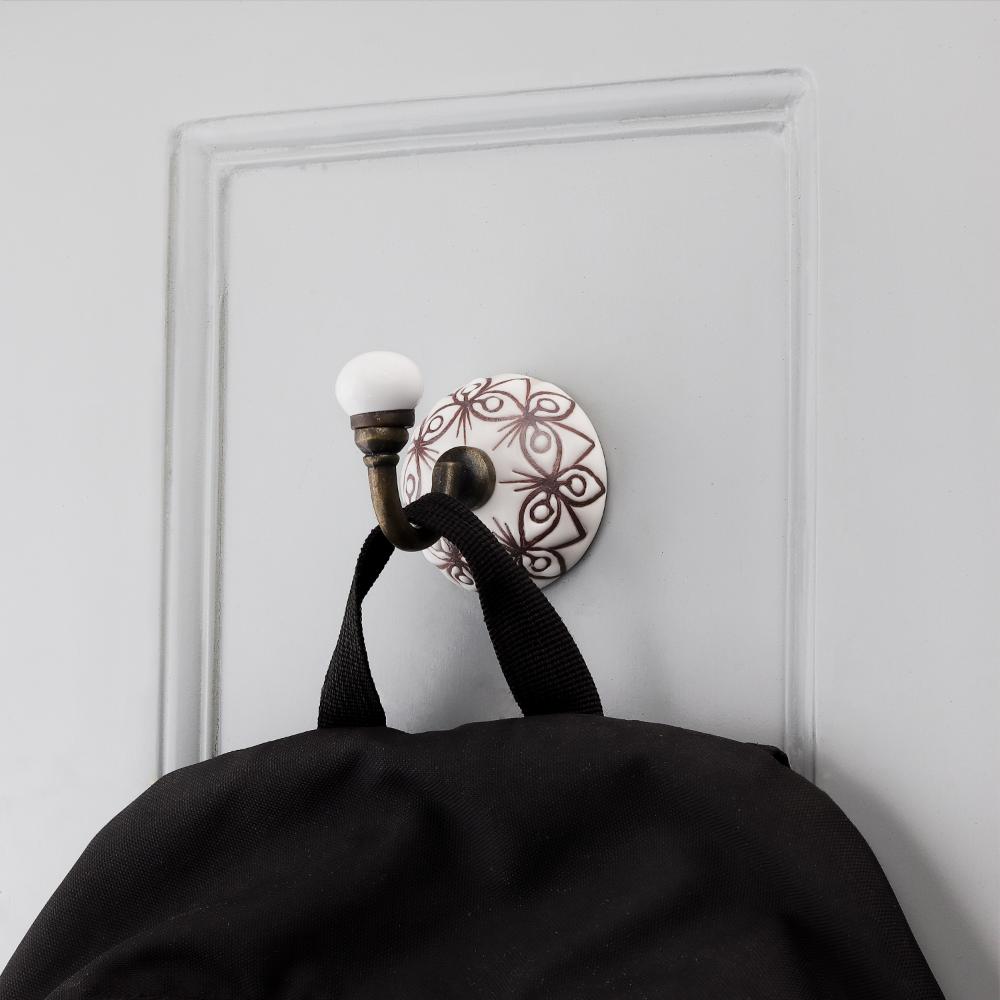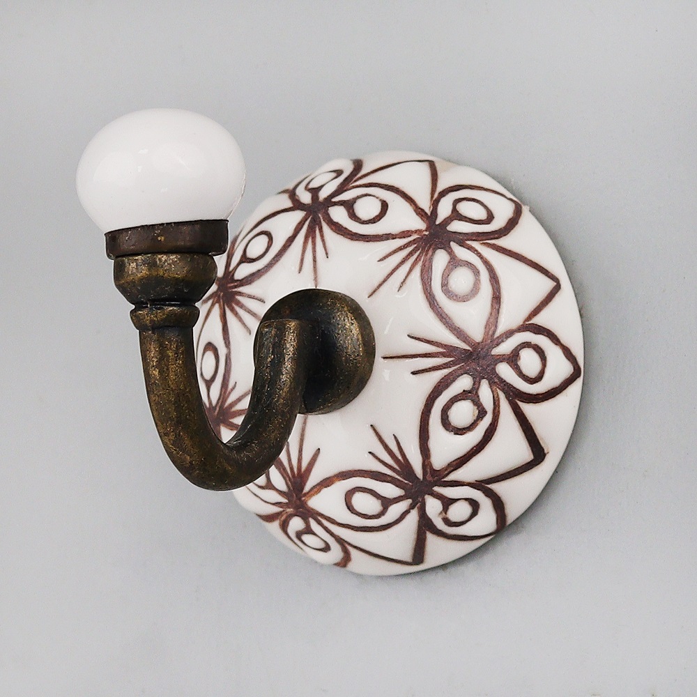 White With Brown Etched Ceramic Wall Hook