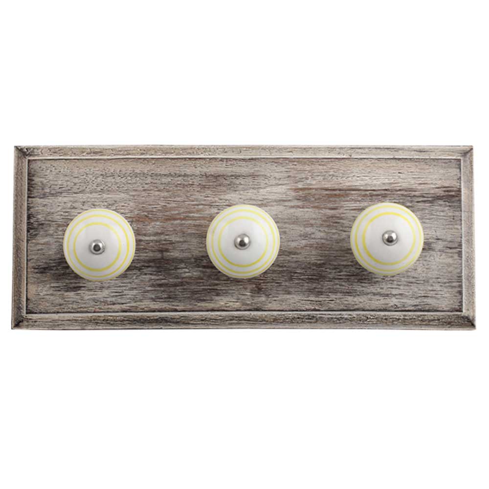White Yellow Strip Wooden Hooks. A Perfect Complement to the Soft Tone of the Wood are these White Traditional Hat Coat Hook Made of Genuine Porcelain and Brass. It can be use to Hang Jewellery, Leashes, Towels, Scarves, Light Weight Sweaters, Caps Etc.