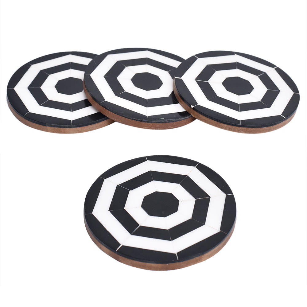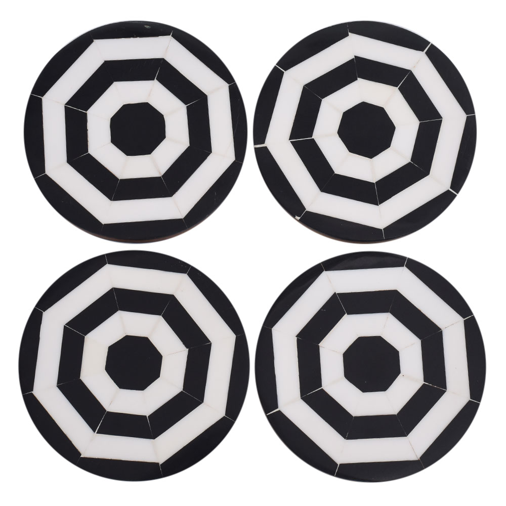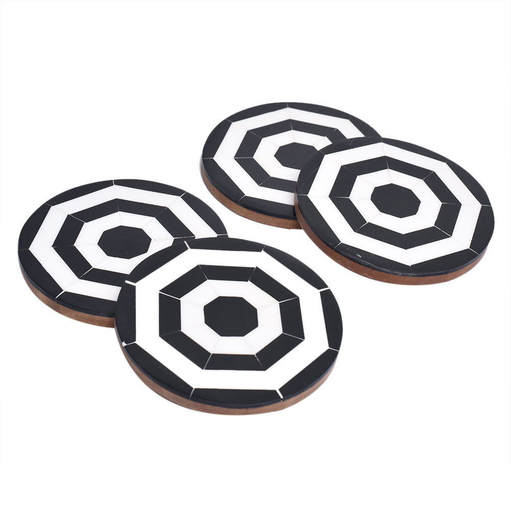 Wood And Resin Black and White Geometrical Design In Set Of 4