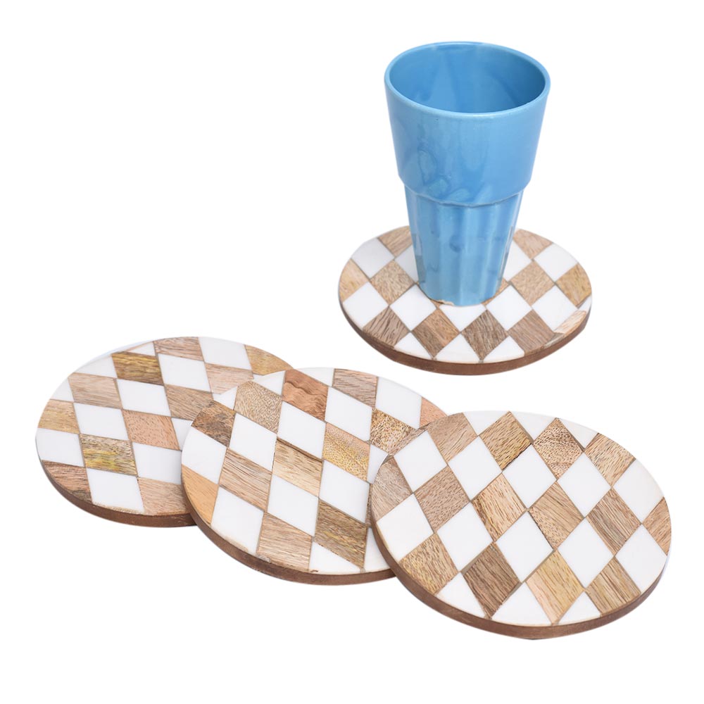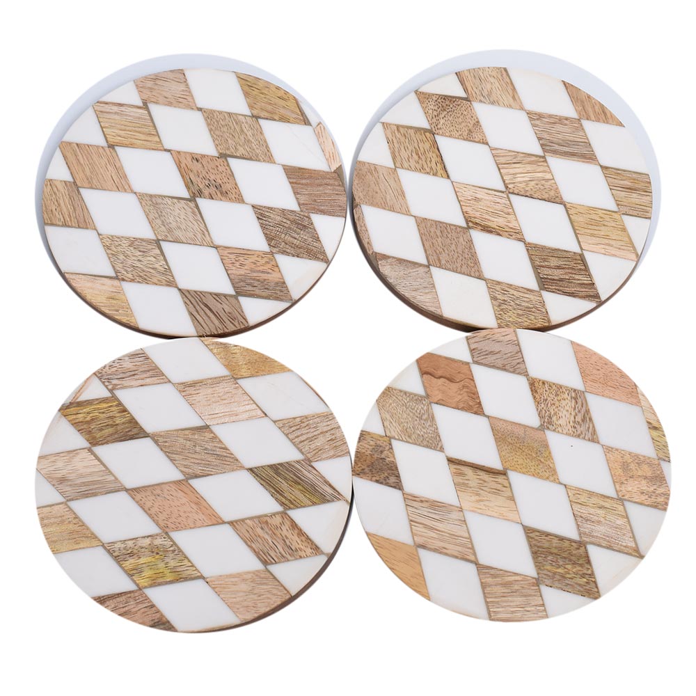 Wood and Resin Fashionable Geometry Coasters In Set of 4