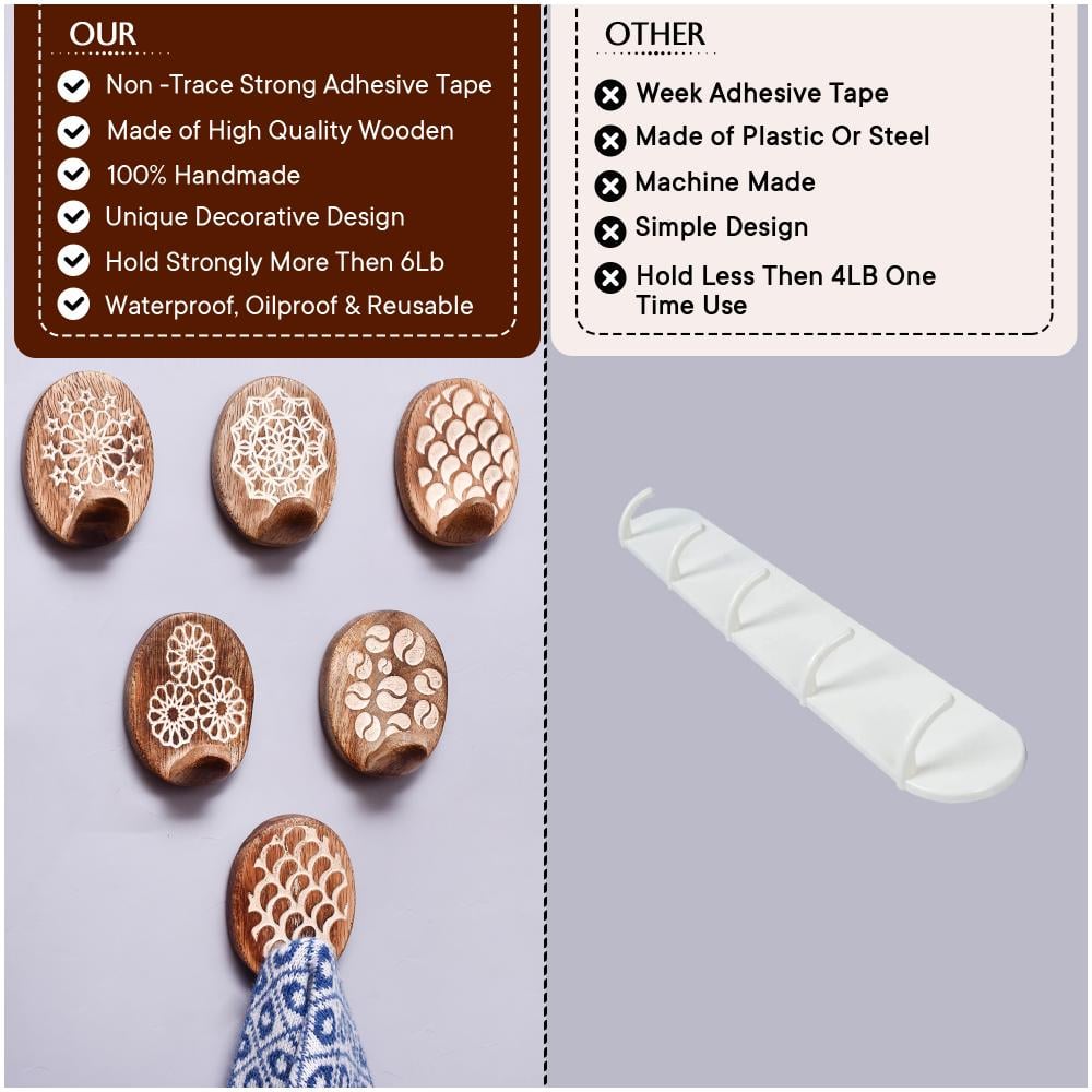 The Wooden Brown Floral Sticky Hook for Wall is not just functional; it also brings a decorative flair to your space. It’s an easy and effective way to organize your belongings while adding a natural, handmade touch to your home.