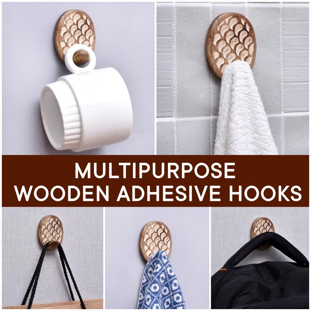 Indianshelf.com for bulk/wholesale orders.Indianshelf.us for personal purchases.This Wooden Brown & White Adhesive Hanging Hook is a stylish and convenient way to organize your space without the hassle of drilling or screws. Its natural wood design paired with a clean white finish enhances any room, adding an elegant touch while keeping your area tidy and functional.